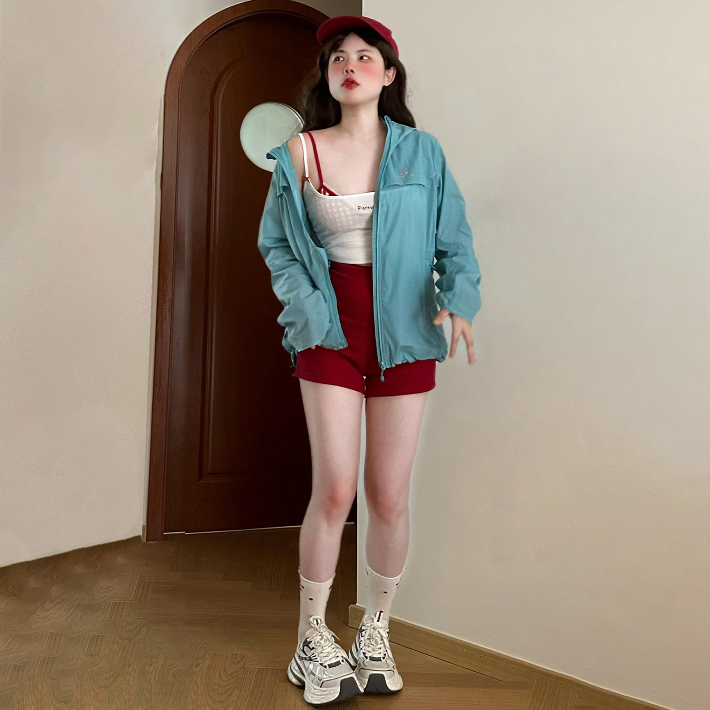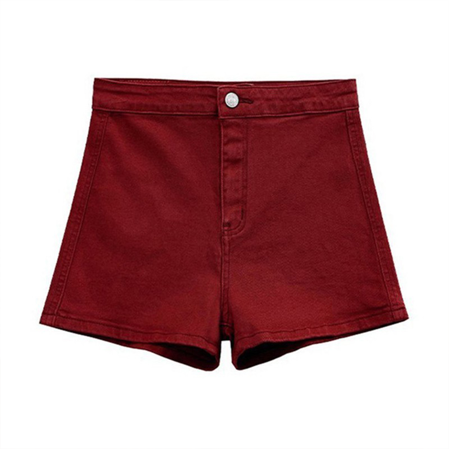 大码女装美式复古高腰显瘦牛仔短裤女夏季辣妹风小个子红色热裤子