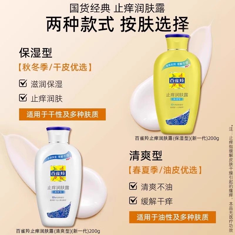 百雀羚身体乳止痒润肤露全身持久保湿润肤乳补水舒缓干燥护肤正品