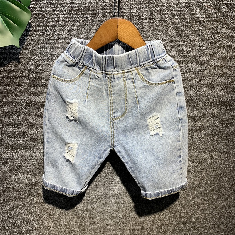 男童牛仔短裤薄款牛n仔马裤中小儿童夏季宽松破洞5分裤子柔软牛仔