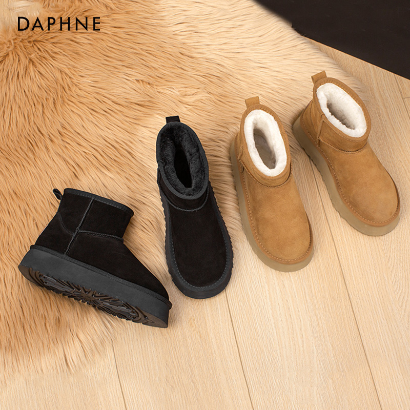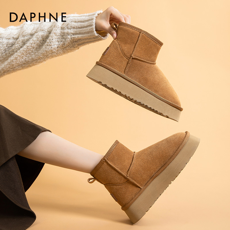 达芙妮厚底雪地靴女冬季2025新款保暖短靴桑坡面包鞋加绒东北棉鞋