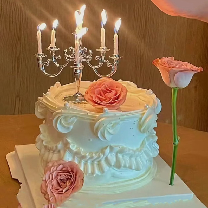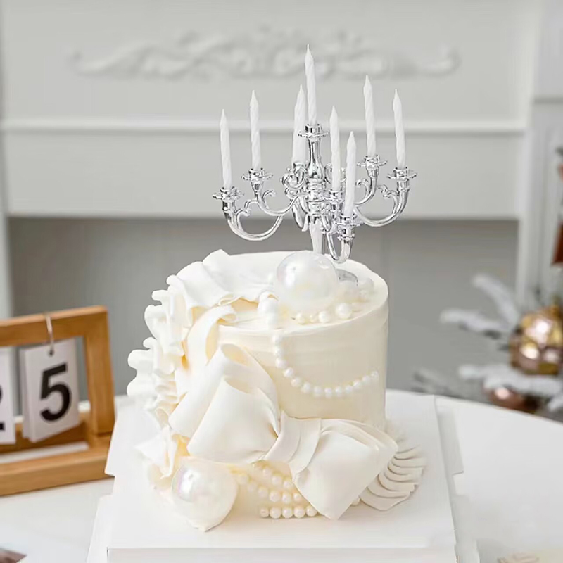 女神生日蛋糕装饰品复古欧式烛台摆件珍珠皇冠珍珠蝴蝶结蜡烛插件