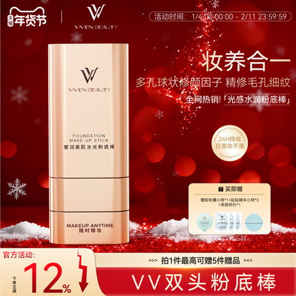VV 双头橡皮擦粉底遮瑕持妆提亮水润防水防汗 24 小时粉底膏正品