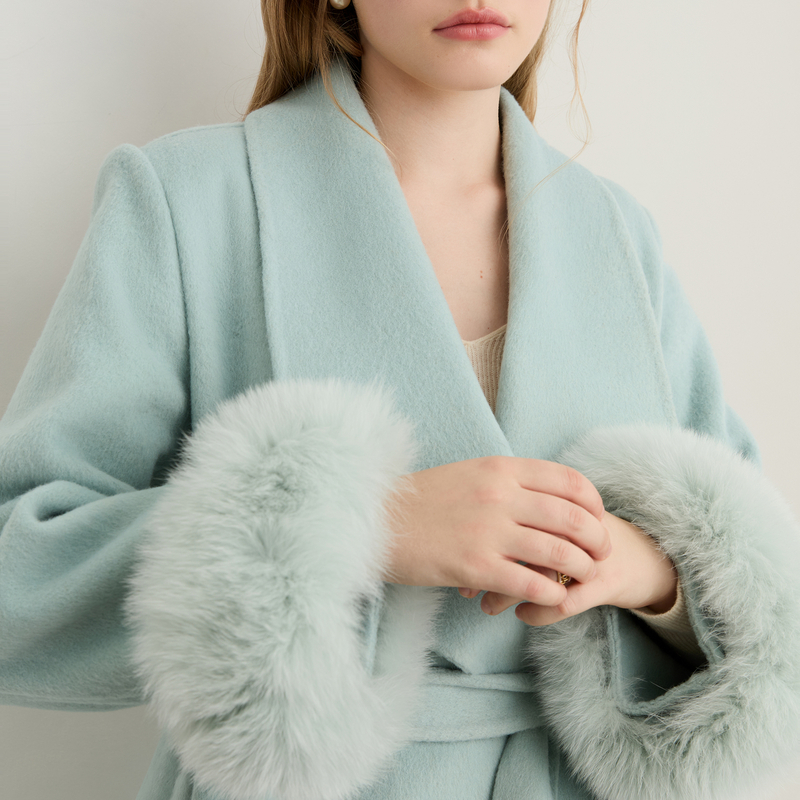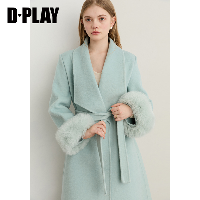 DPLAY【惠品】2025年冬季新款蓝色呢子大衣女羊毛长款毛呢外套