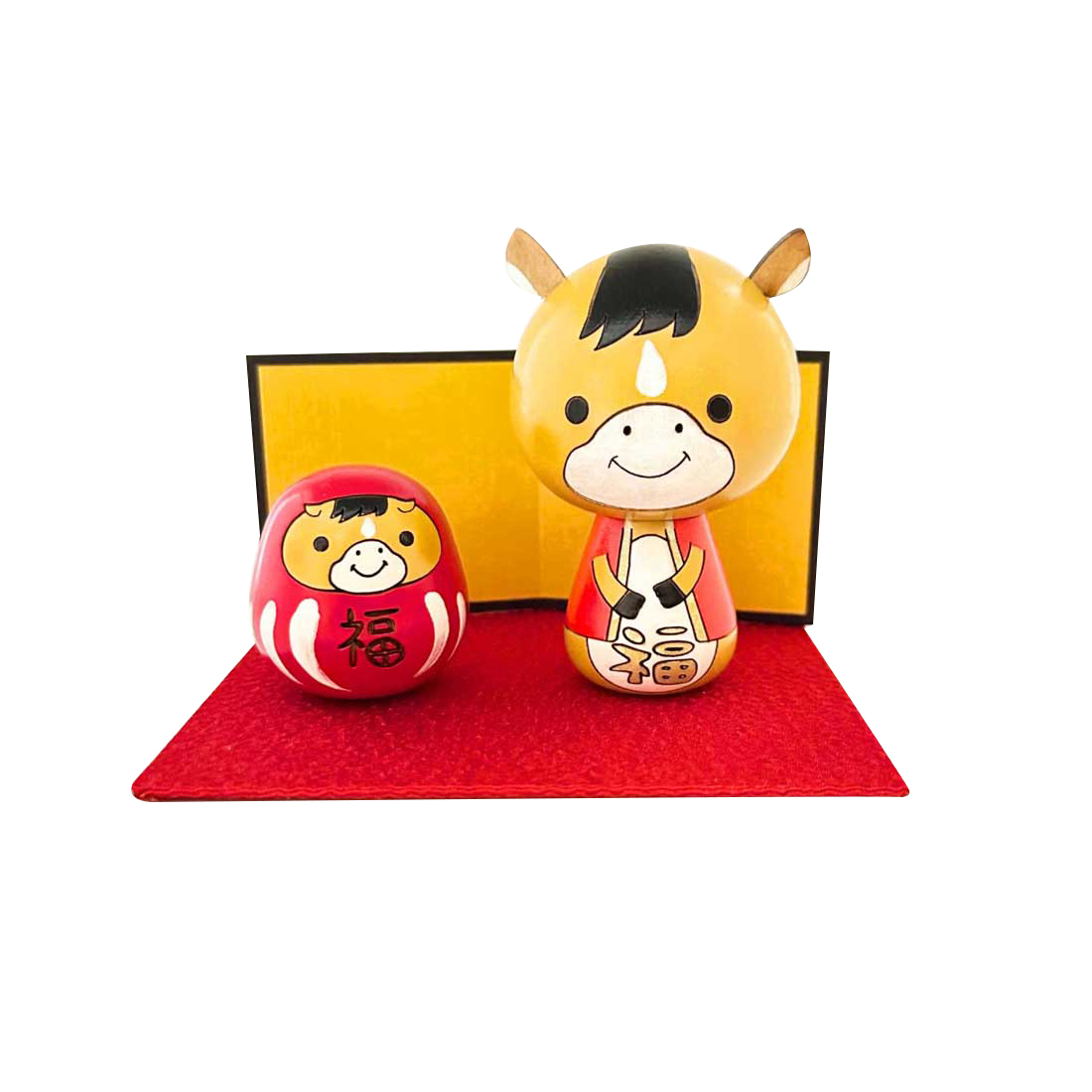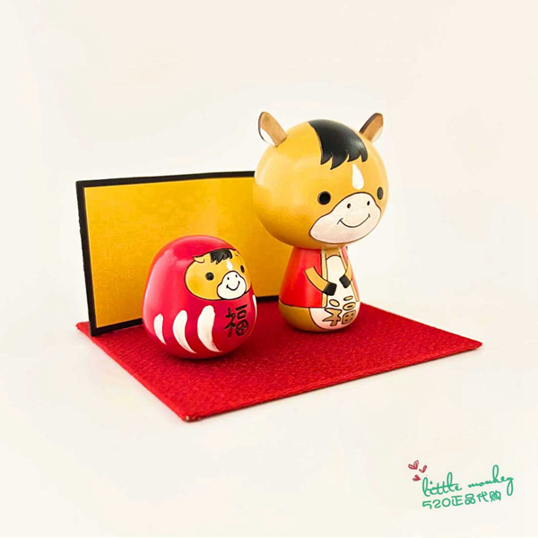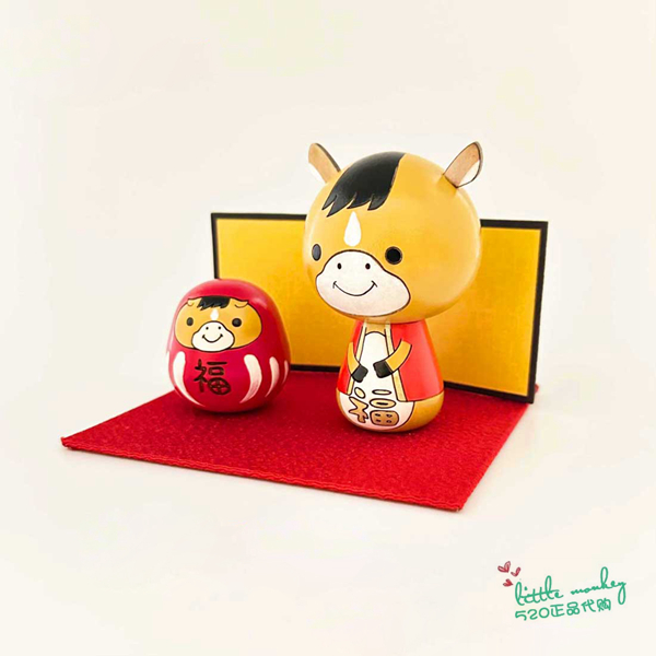 日本代购 2026年生肖马 达摩 职人手工 日式屏风招福木偶开运摆件