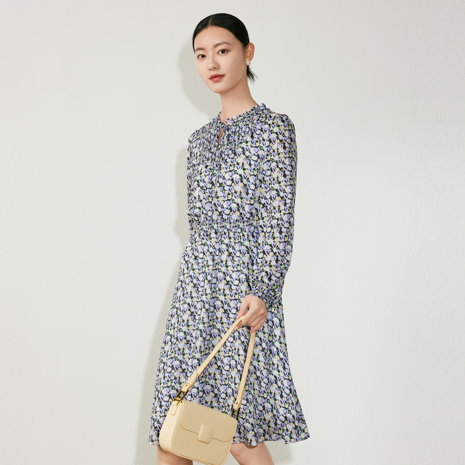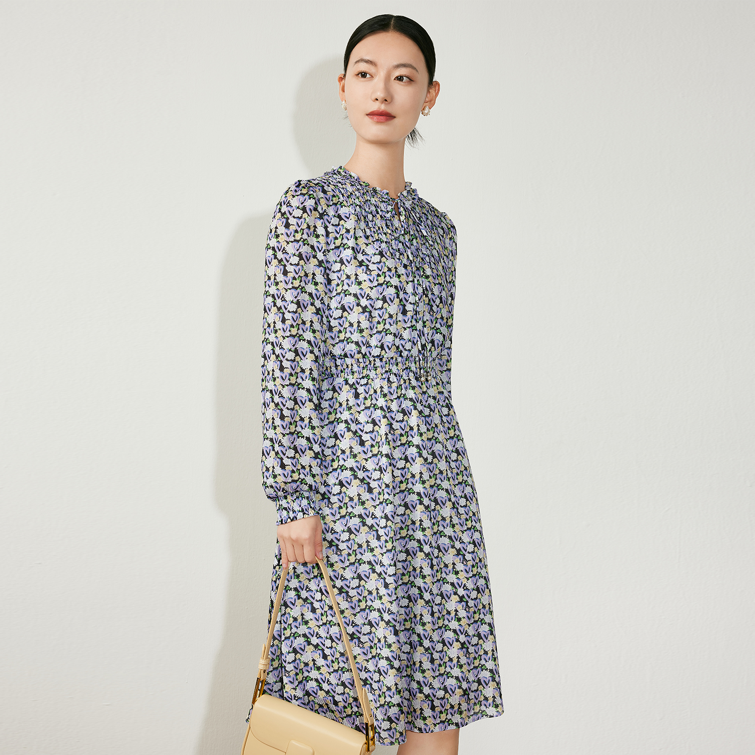 JZ玖姿官方奥莱爱心碎花印花连衣裙女装春季款收腰显瘦裙子紫色