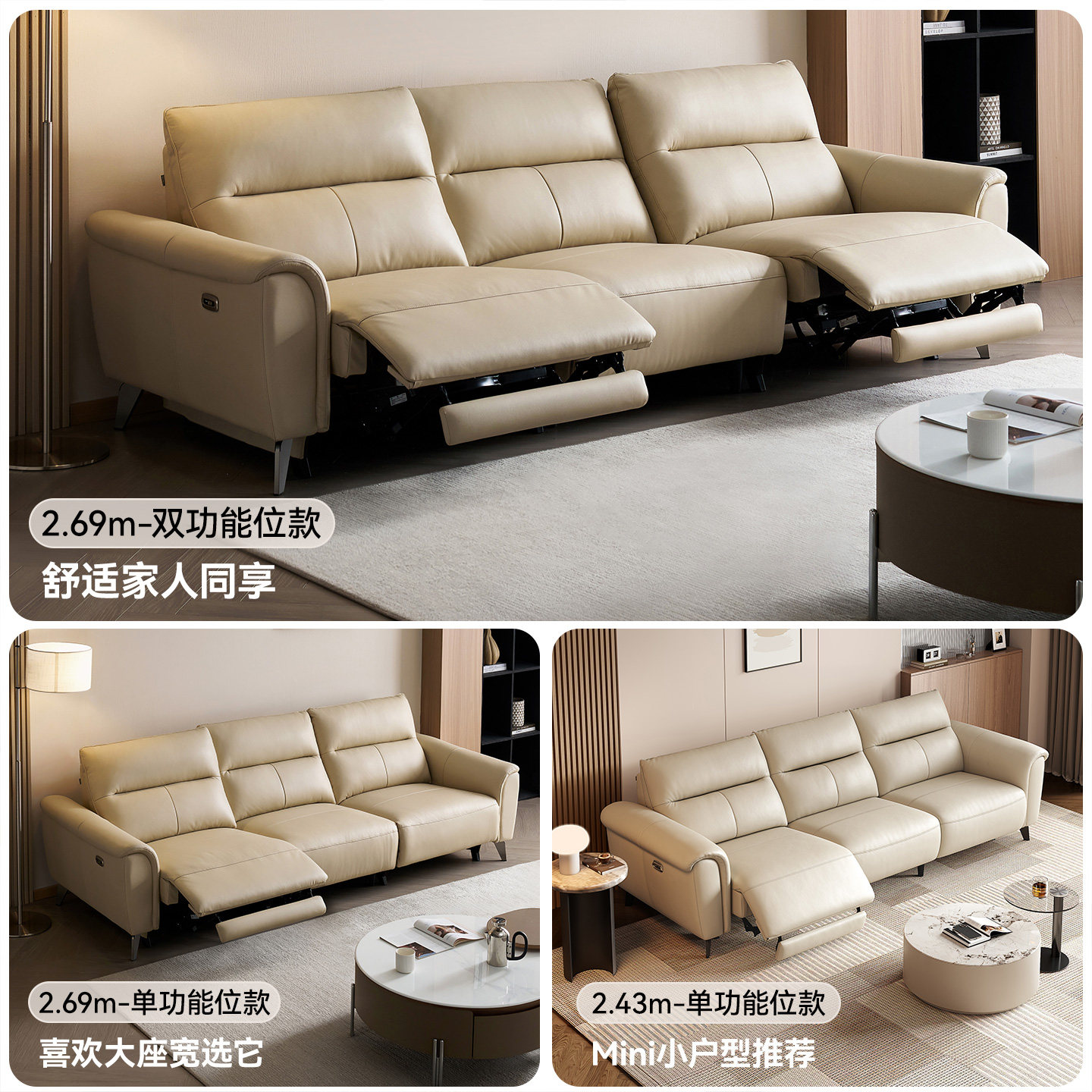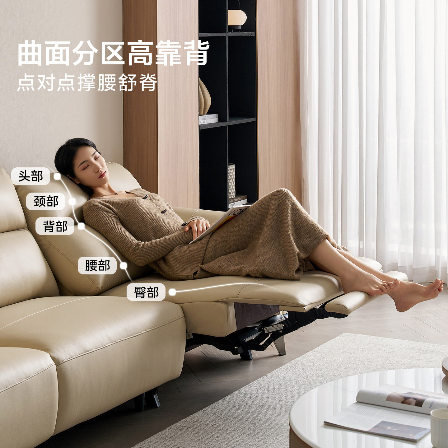 全友家居进口头层牛皮电动沙发