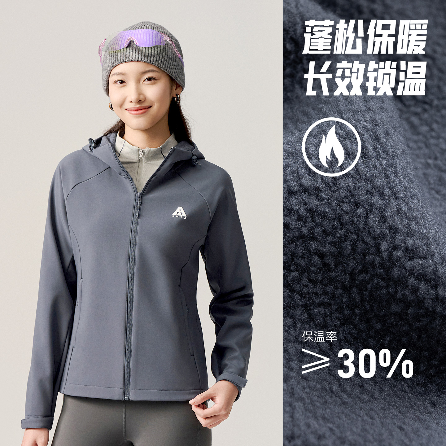 安踏软壳衣丨大地之壳3.0防泼水运动外套女冬季新款加绒跑步上衣
