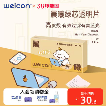 卫康晨曦防蓝光高度数隐形眼镜半年抛1片透明水凝胶防uv近视