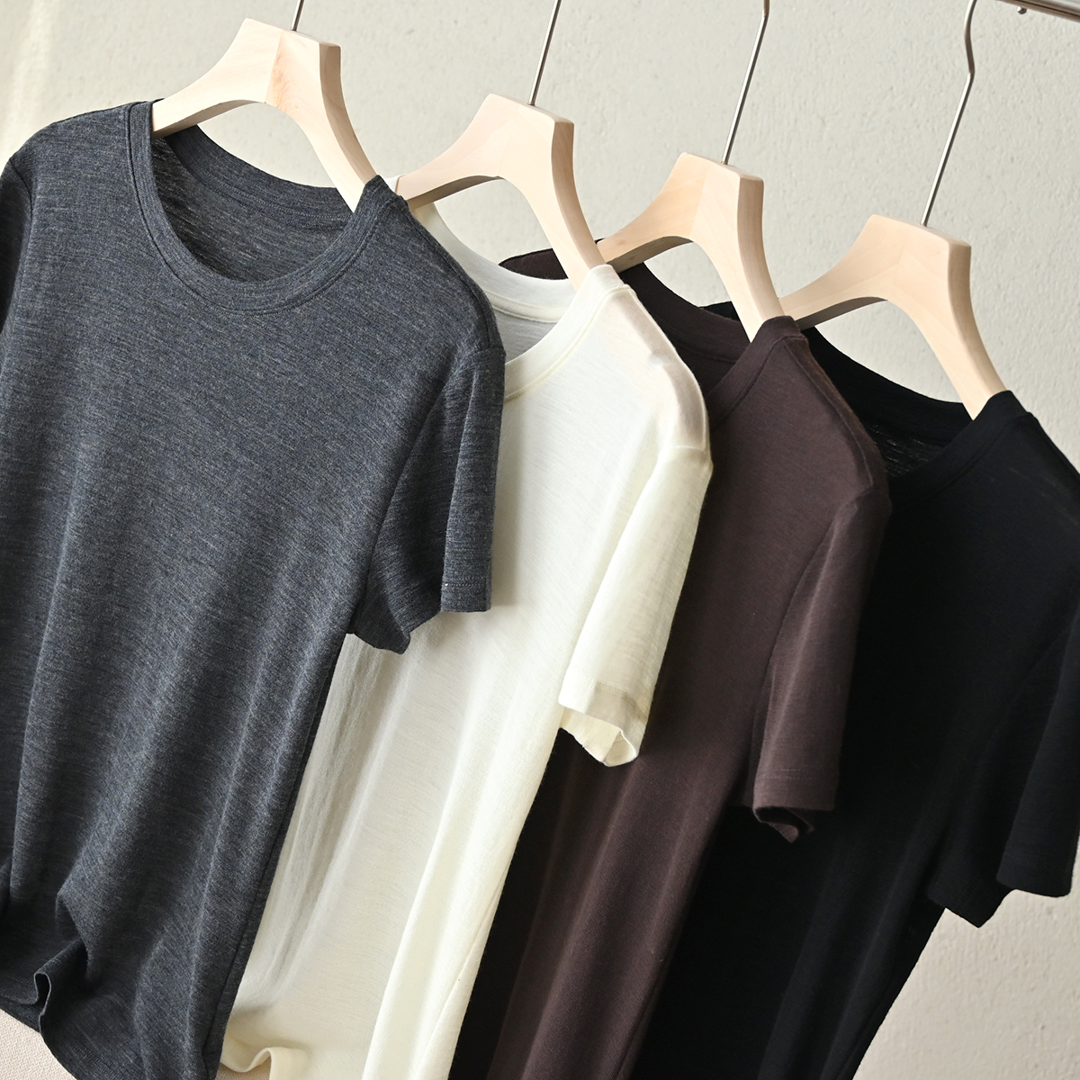 25024 100支 可机洗美丽诺全羊毛 女士圆领短袖薄软T恤衫夏款女装