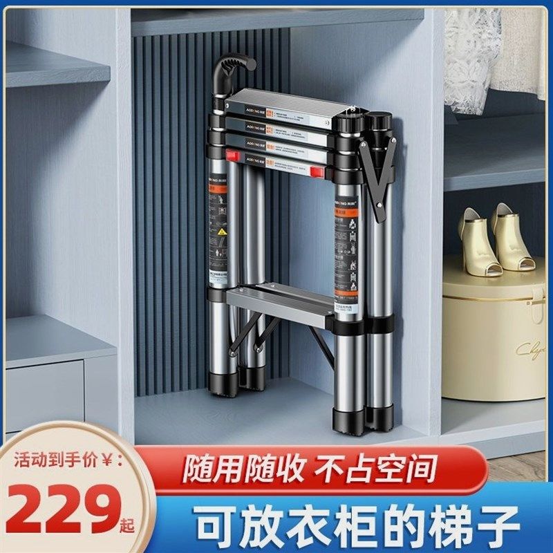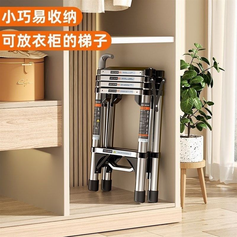 德国进口奥鹏多功能家用伸缩梯子加厚不锈钢折叠小梯子室内便携升