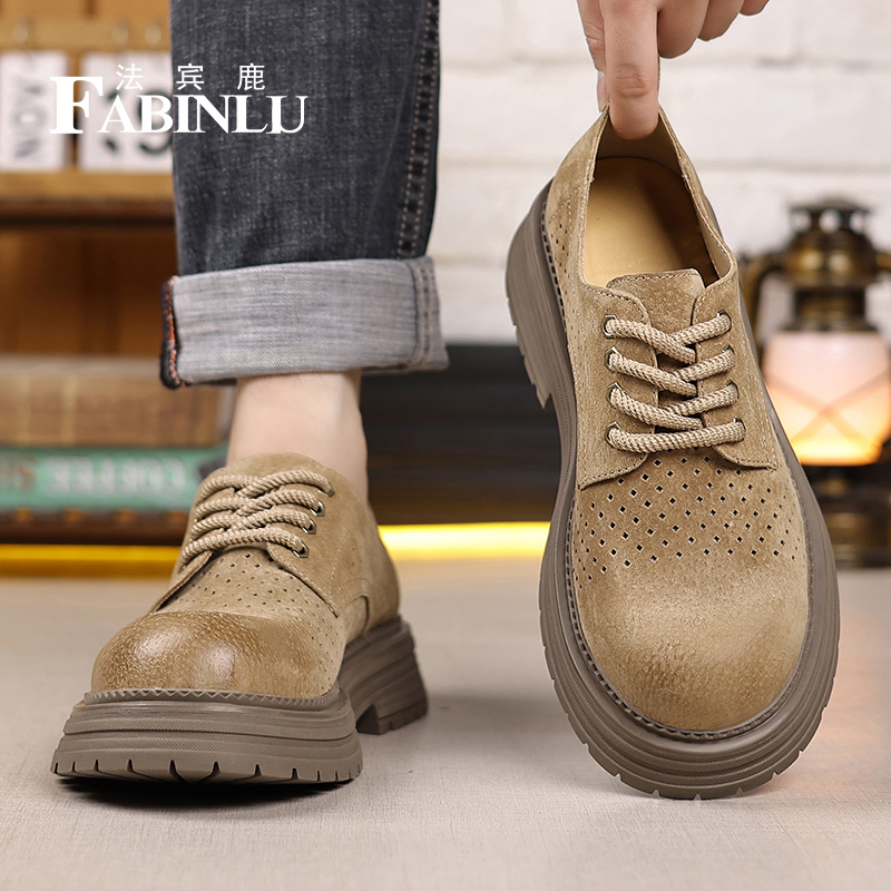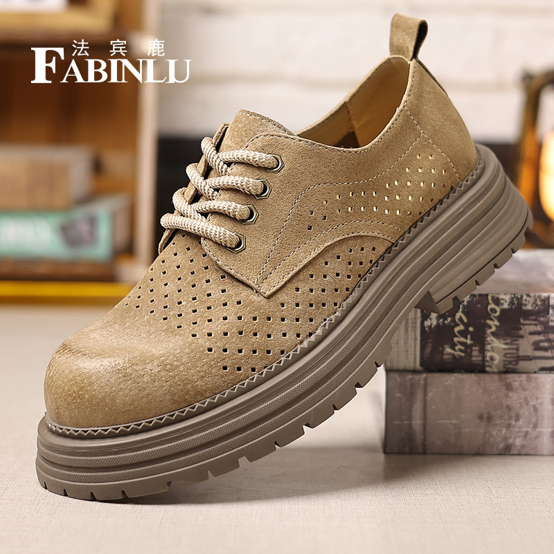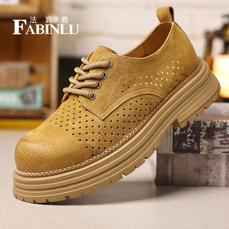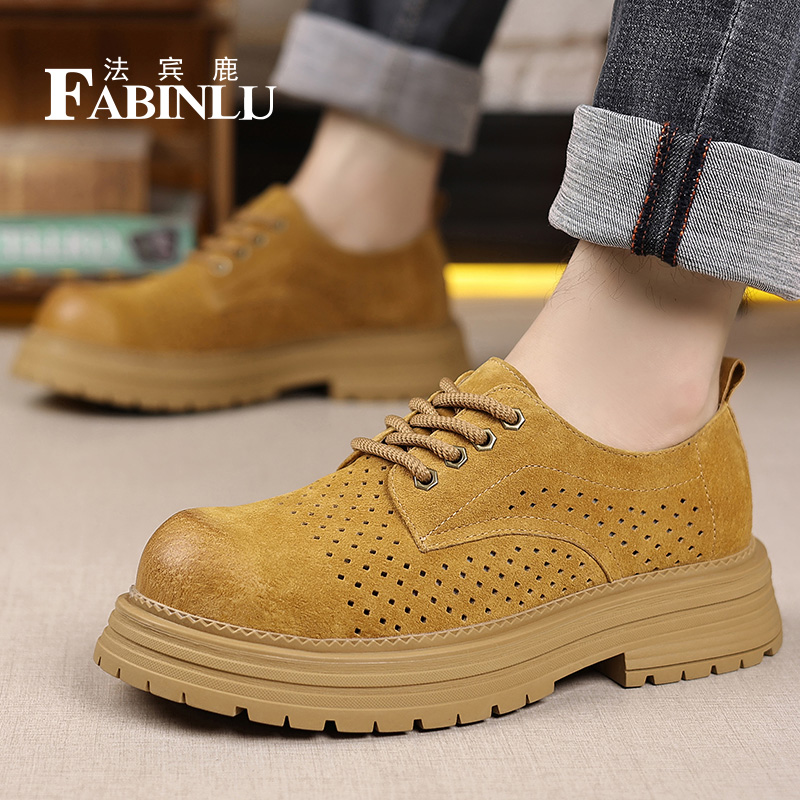 法宾鹿工装鞋男士洞洞鞋镂空透气休闲皮鞋夏季工装靴低帮马丁鞋男