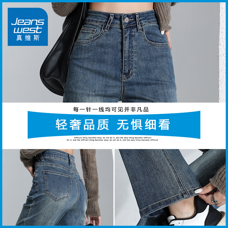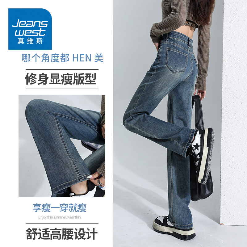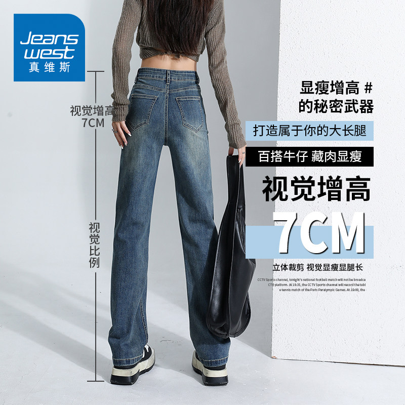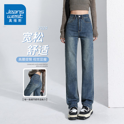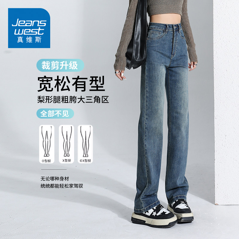 KZH真维斯高腰牛仔裤女秋冬新款宽松直筒裤复古显瘦百搭阔腿长裤