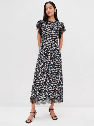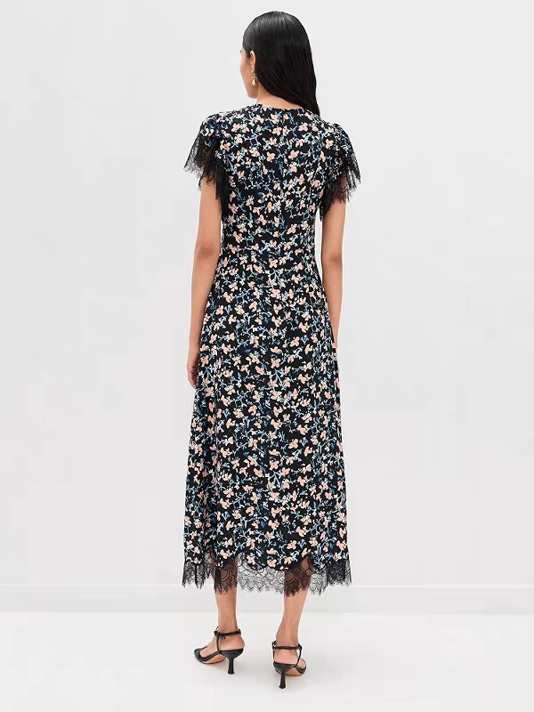 6000+的新款ullaJohnson修身印花真丝蕾丝拼接时尚气质连衣裙