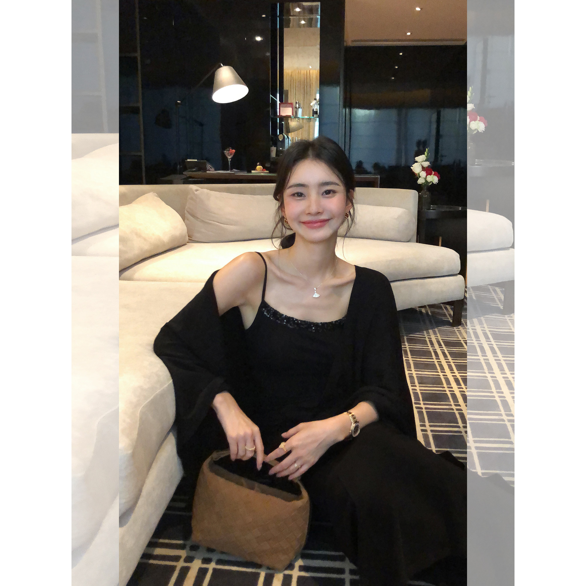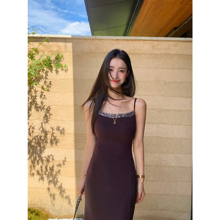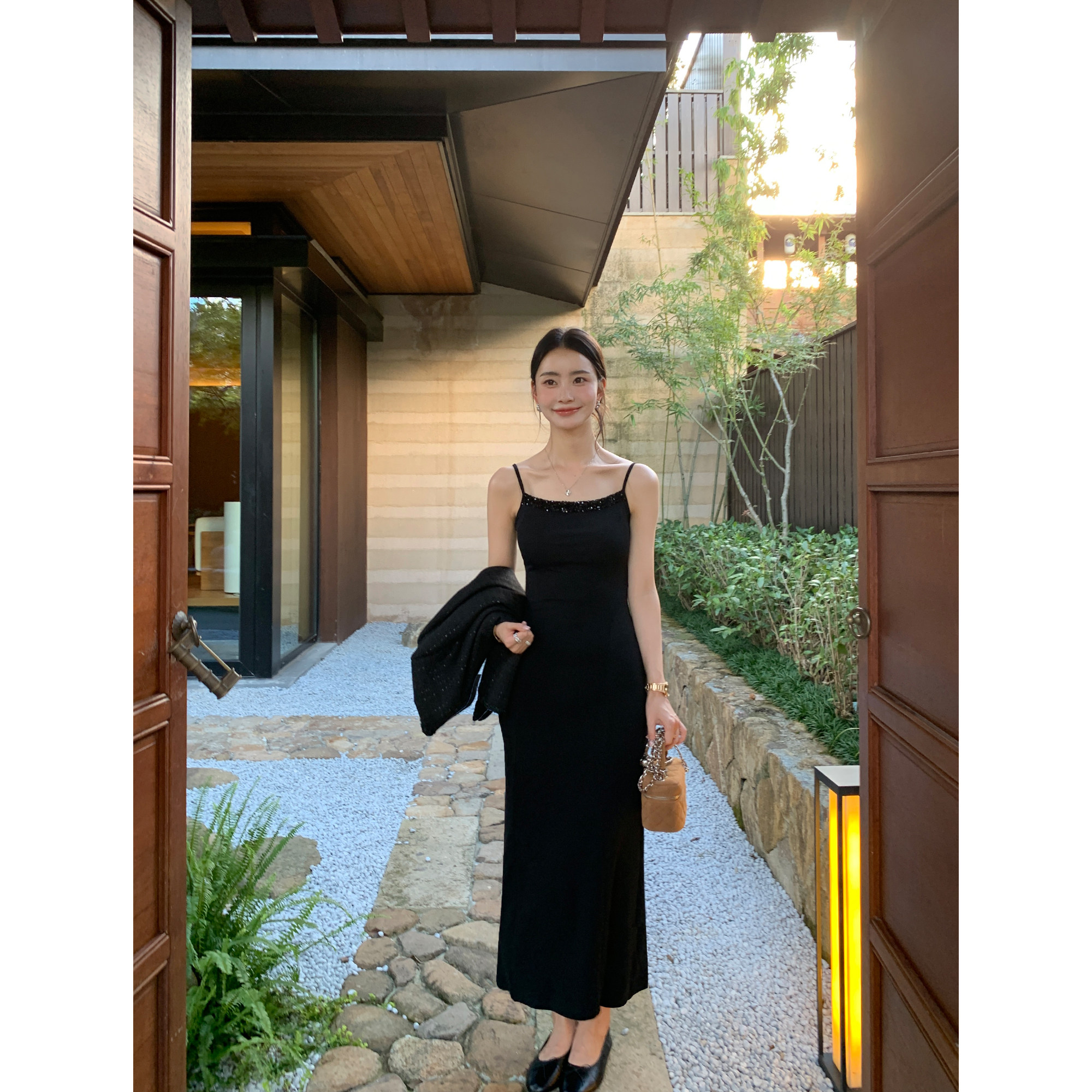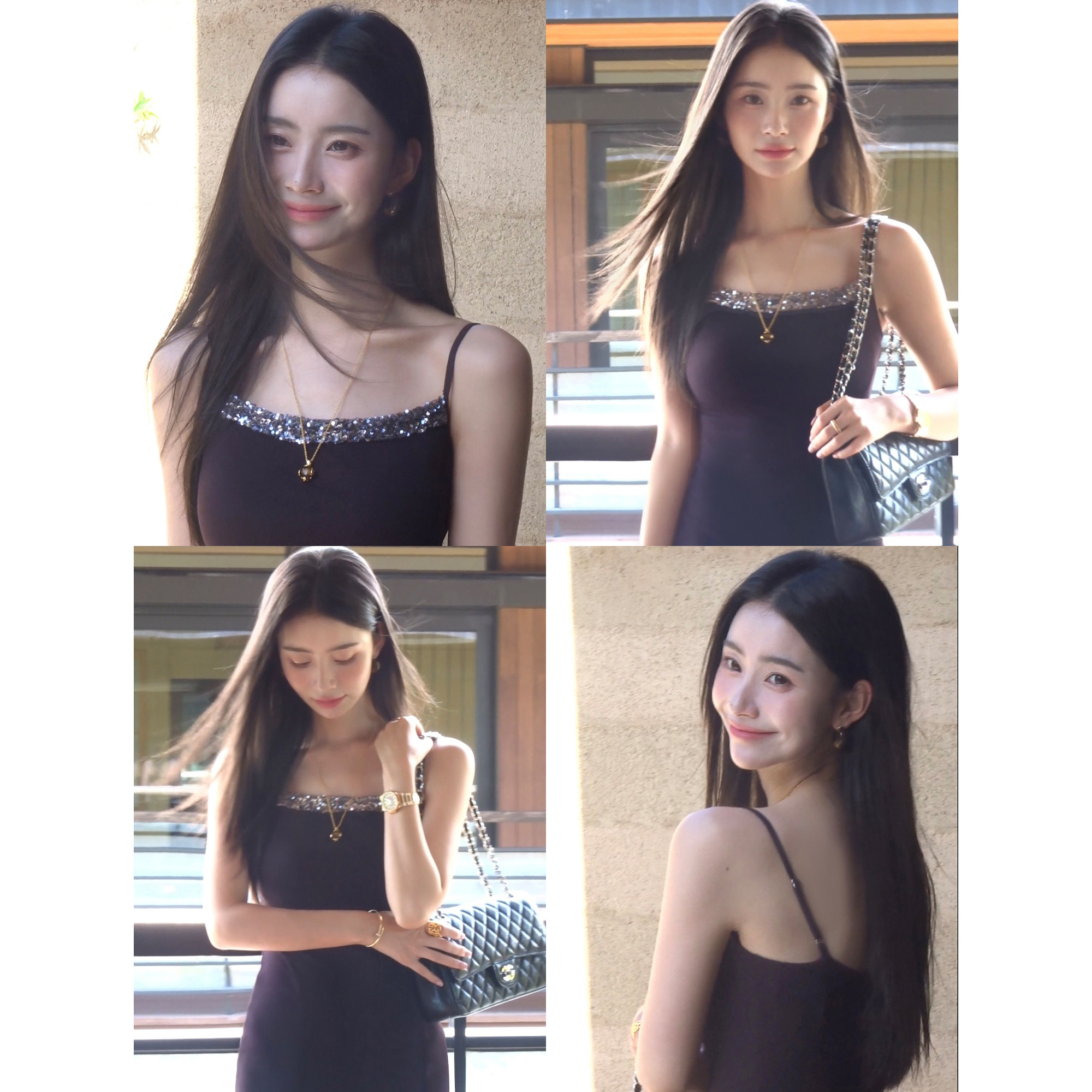 pusumede 心动归属 亮片拼接吊带连衣裙女气质修身针织内搭鱼尾裙