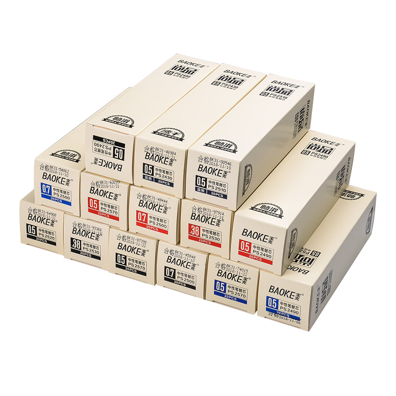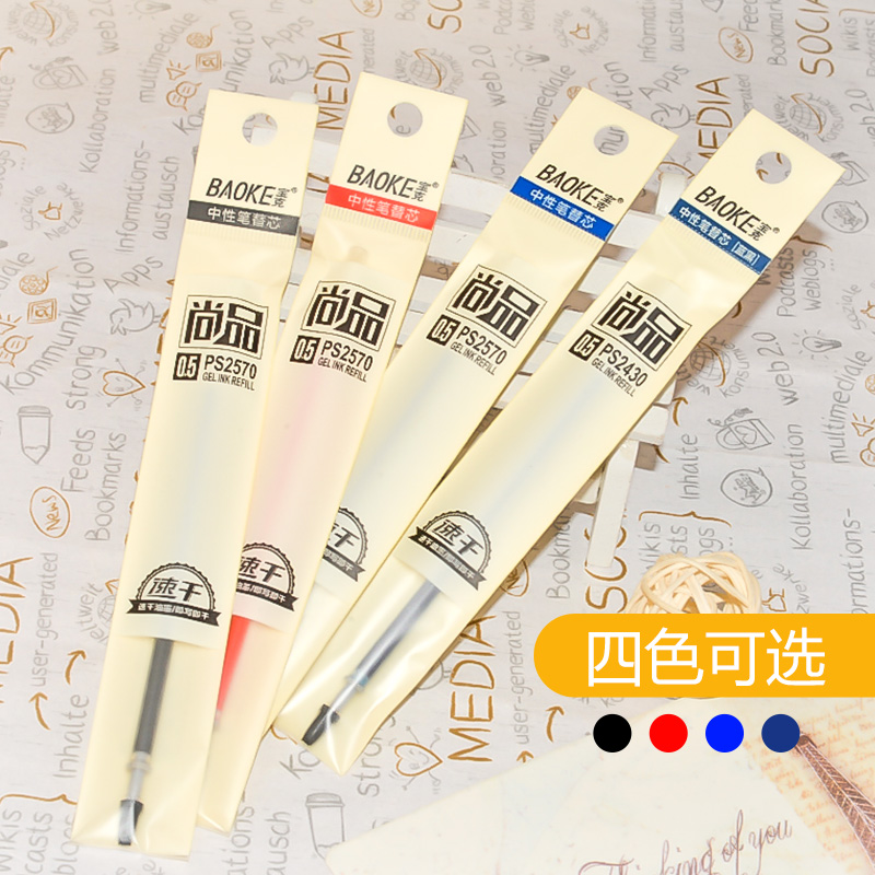 宝克中性笔芯0.38子弹头水笔学生替芯全针管0.5黑色红蓝批发0.5mm办公1.0书写0.7水笔芯20/24支装蓝黑