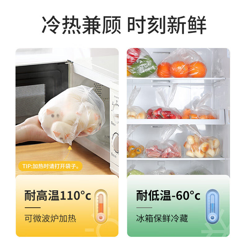 美丽雅保鲜袋背心式大号中号食品级加厚密封袋 一次性冰箱分装袋