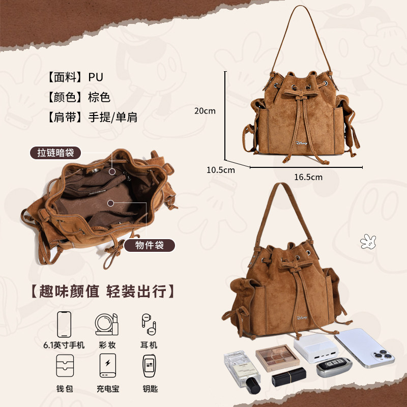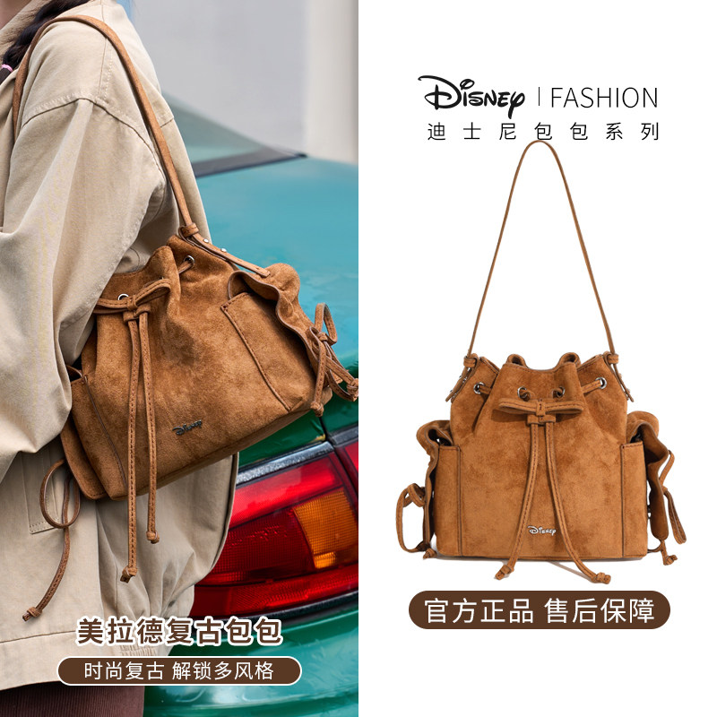 迪士尼包包女式2025新款轻奢小众高级水桶包巨好看手提斜跨单肩包