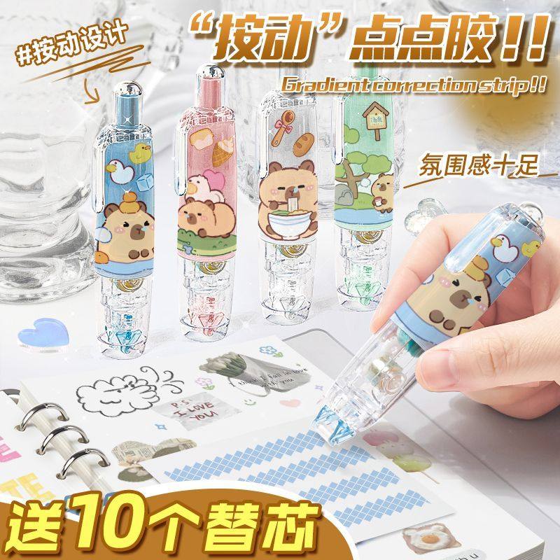 长立按动点点胶修正带式高粘度无痕不留胶学生用错题粘贴点状双面胶透明胶带儿童手工点胶笔贴纸手账胶带文具