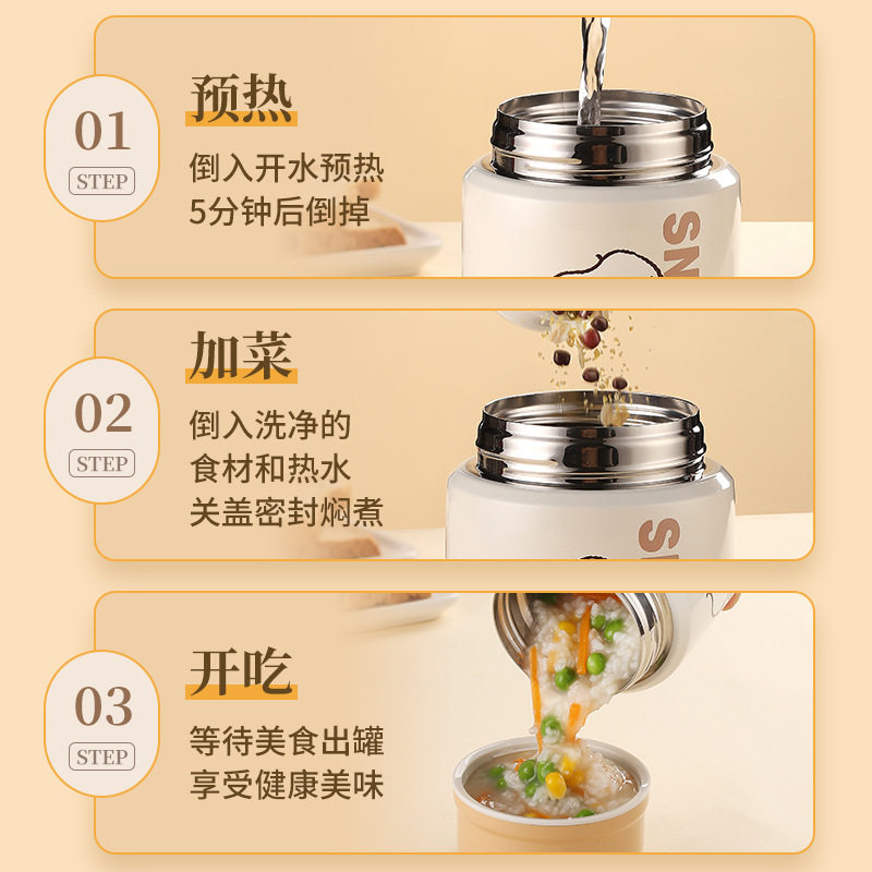 史努比焖烧杯316不锈钢男女学生上班族焖粥带饭保温饭盒520ml7187