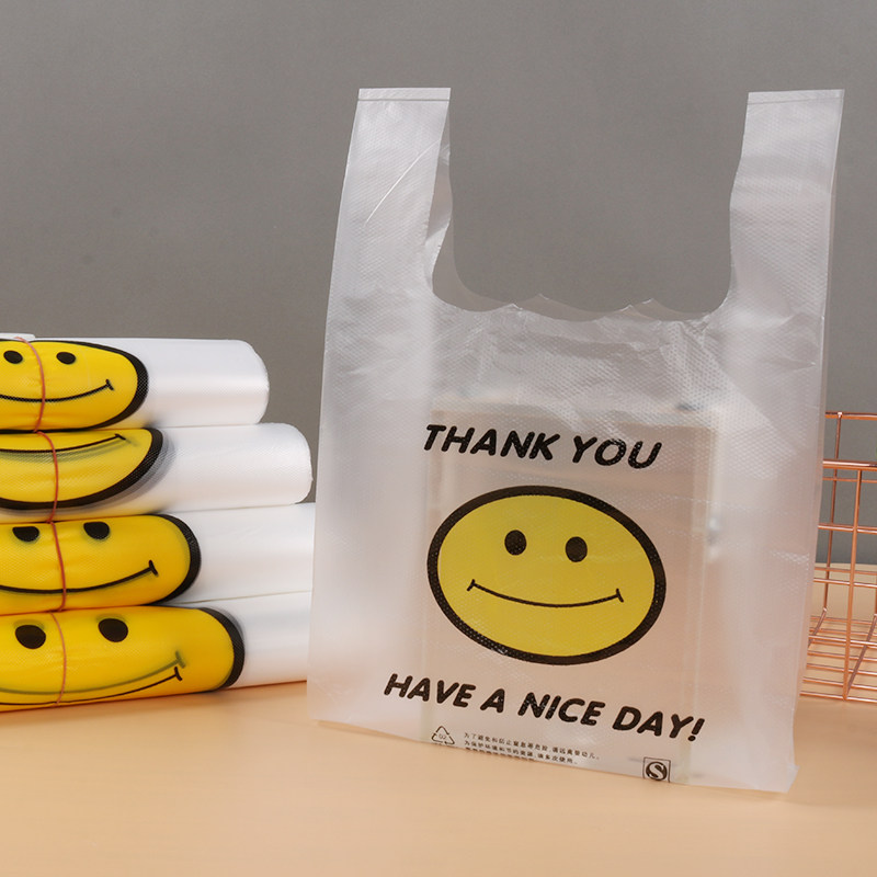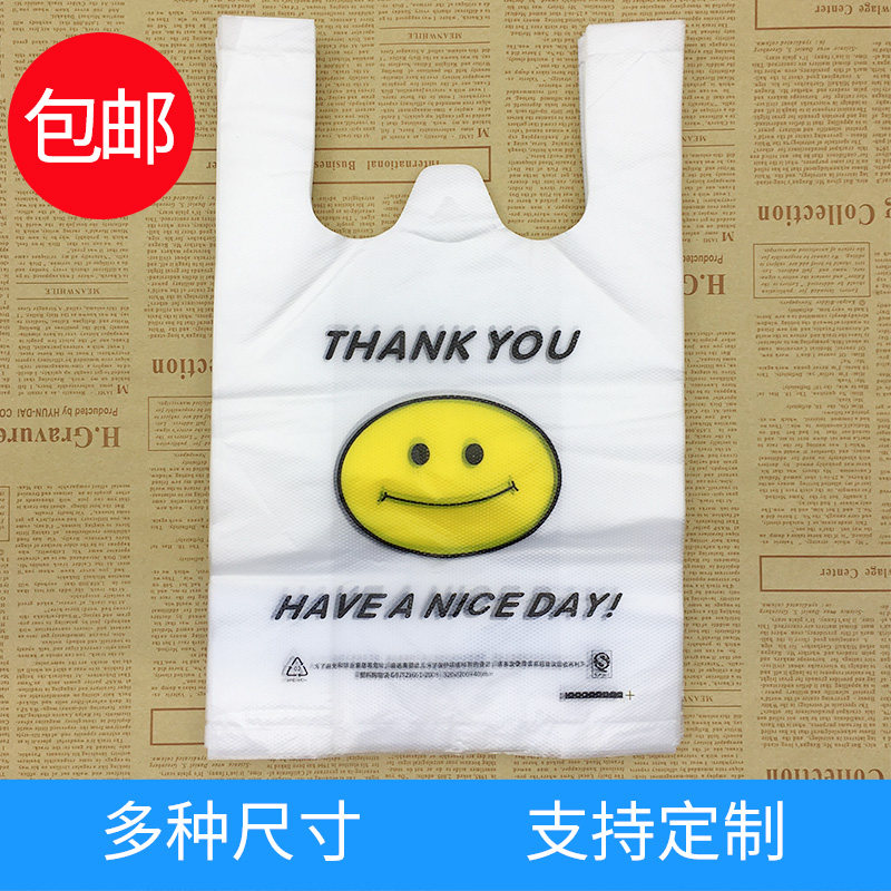 加厚所料带 商店手提袋 大容量笑脸马甲马夹袋背心塑料袋店名包邮