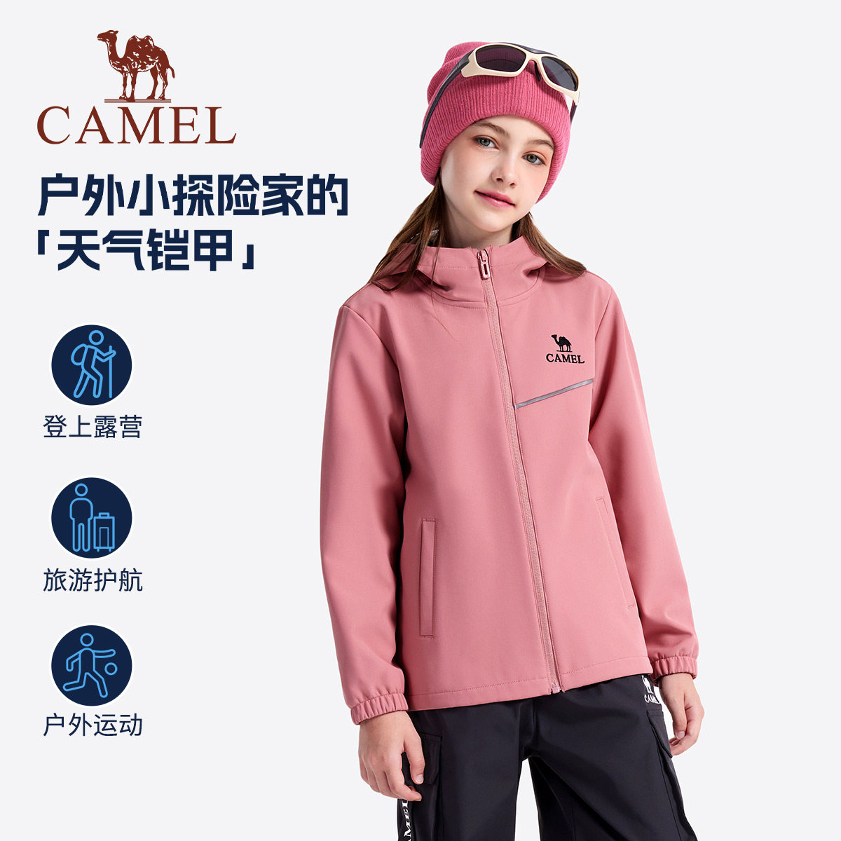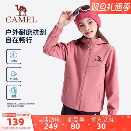 小骆驼童装外套儿童夹克户外加绒防风防雨中大童软壳衣男童冲锋衣