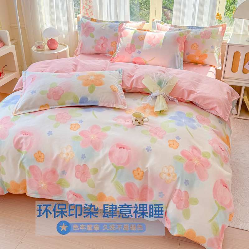 南通家纺彩虹爱心纯棉亲肤单被套被罩磨毛学生宿舍三件套四件套
