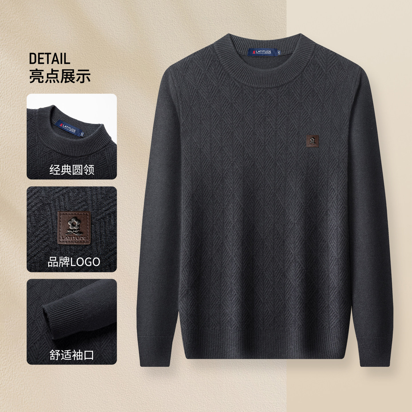 100%绵羊毛-梦特娇男士套头内搭针织衫加厚保暖打底毛衣秋冬新款Z