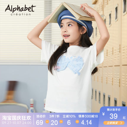春夏女童白色短袖t恤宽松中大儿童装上衣体恤洋气时髦潮