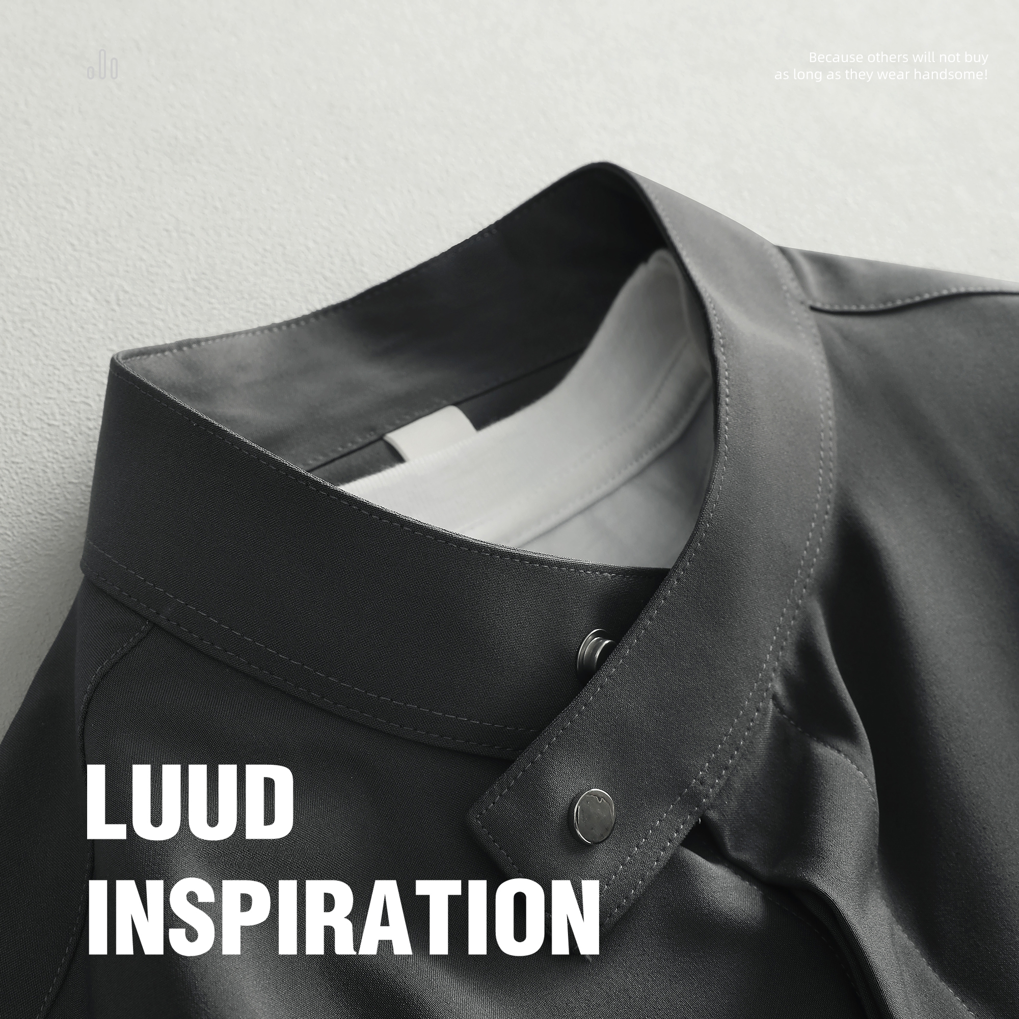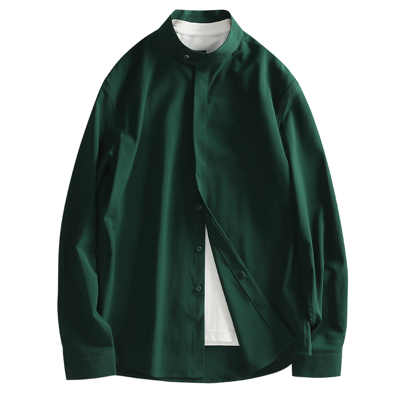 LUUD 轻奢高级感纯色免烫休闲寸衣外套小立领修身潮流灰色衬衫男