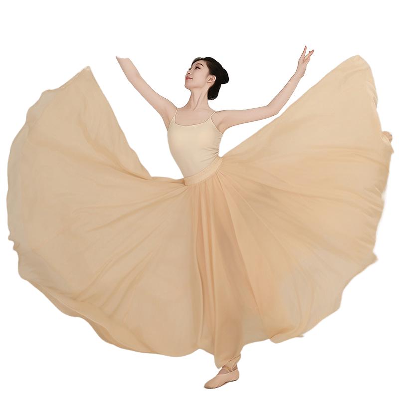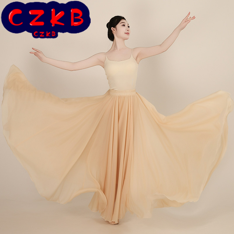 古典舞蹈女飘逸720度古典舞裙大摆裙带闪光仙气半身裙练功服