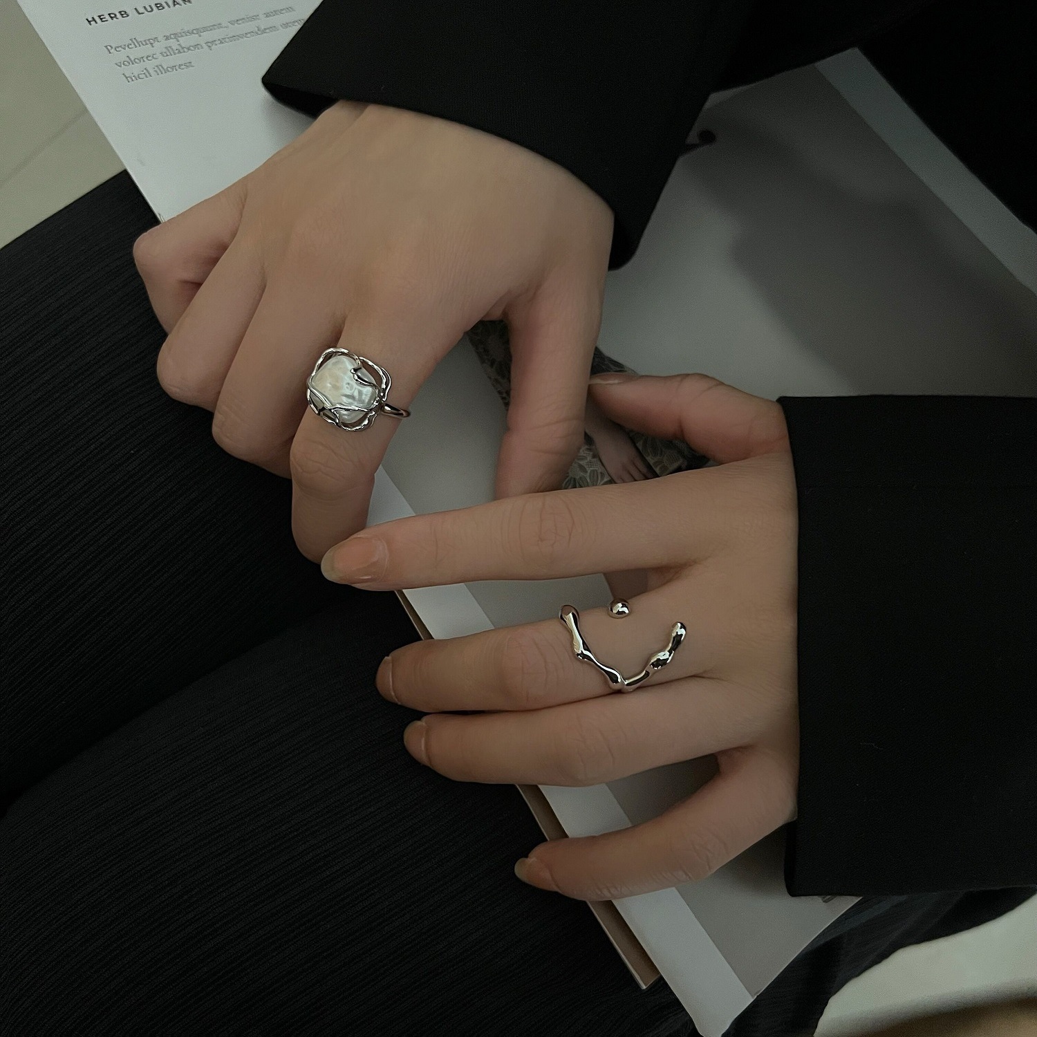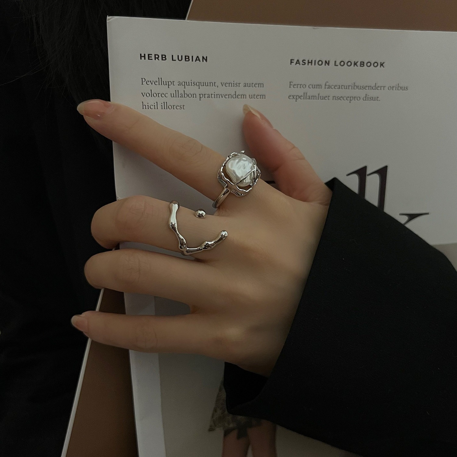 一恋藤蔓珍珠缠绕戒指女时尚个性气质开口指环ins叠戴食指戒潮