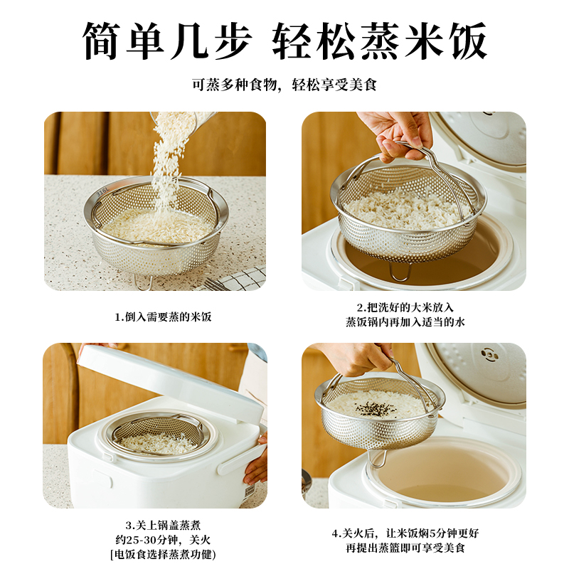 316L不锈钢蒸笼电饭锅米汤分离蒸饭神器蒸沥米饭蒸格提手蒸架蒸屉