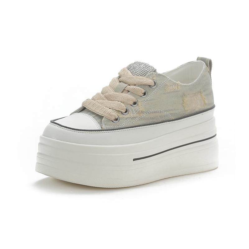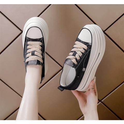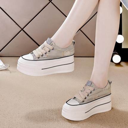 厚底松糕鞋帆布鞋子2025新款百搭休闲板鞋内增高6CM小白鞋女单鞋