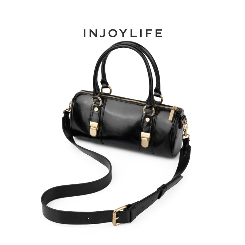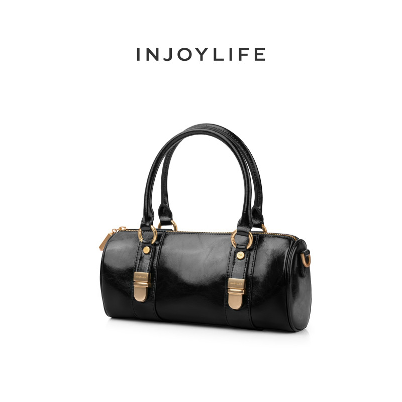 INJOYLIFE锁扣法棍包复古手提波士顿保龄球包通勤圆筒包单肩斜挎