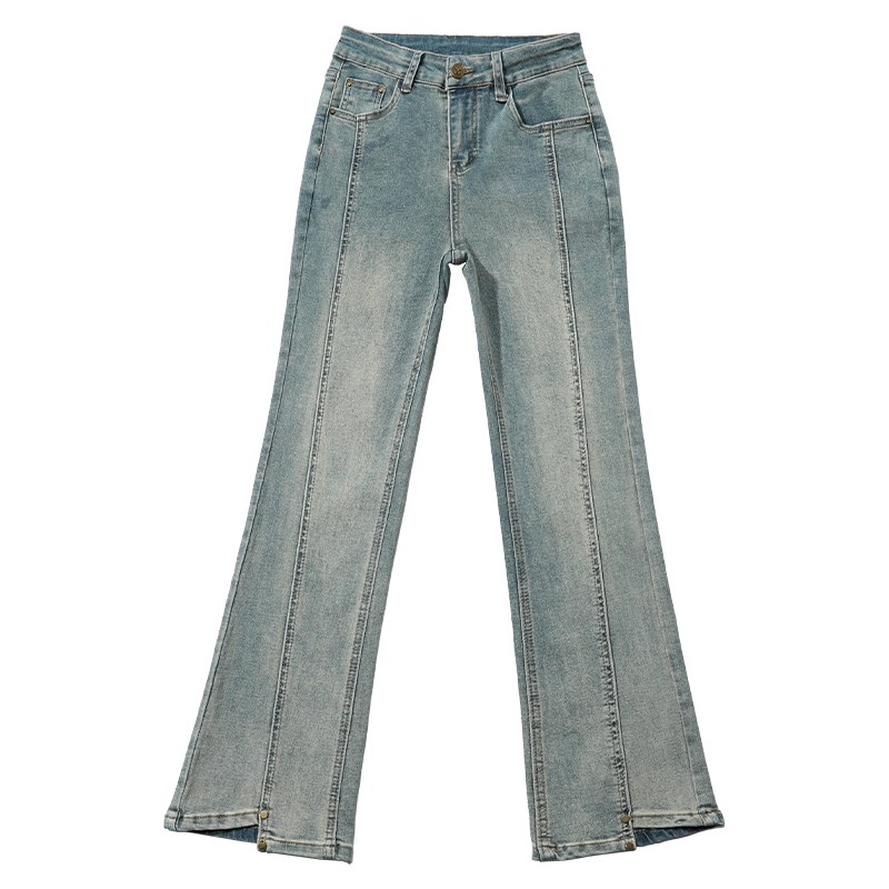 浅色微喇叭牛仔裤女春秋薄款2024年新款高腰修身显瘦九分开叉裤子