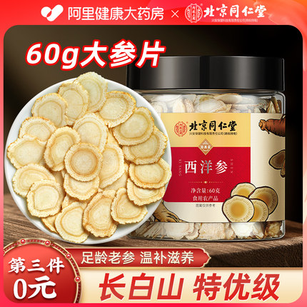 长白山西洋参含片洋参片粉官方旗舰店正品人参片花旗参切片60g
