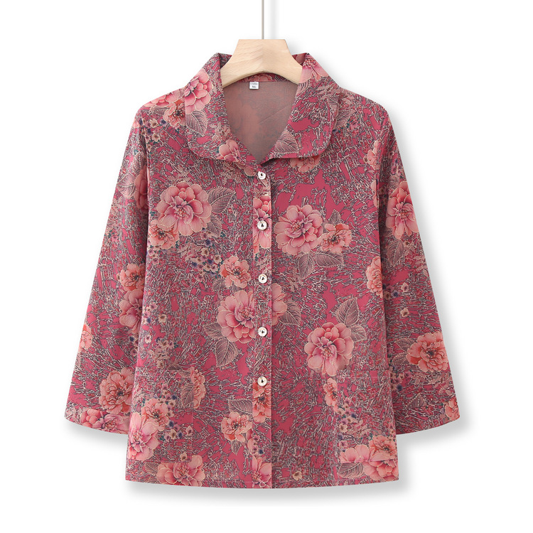 中老年人夏季女装九分袖衬衫奶奶装轻薄衬衫夏装休闲上衣老人衣服
