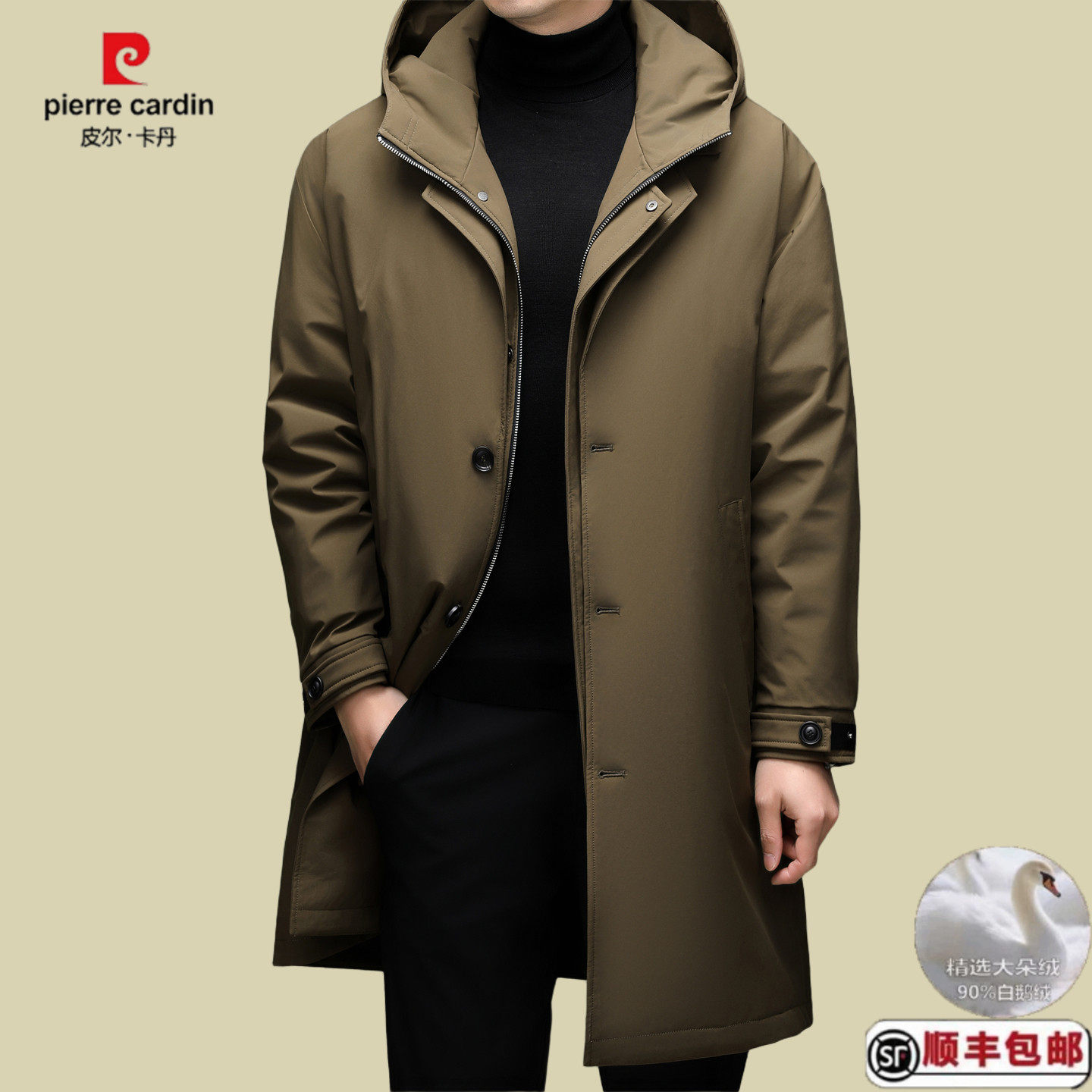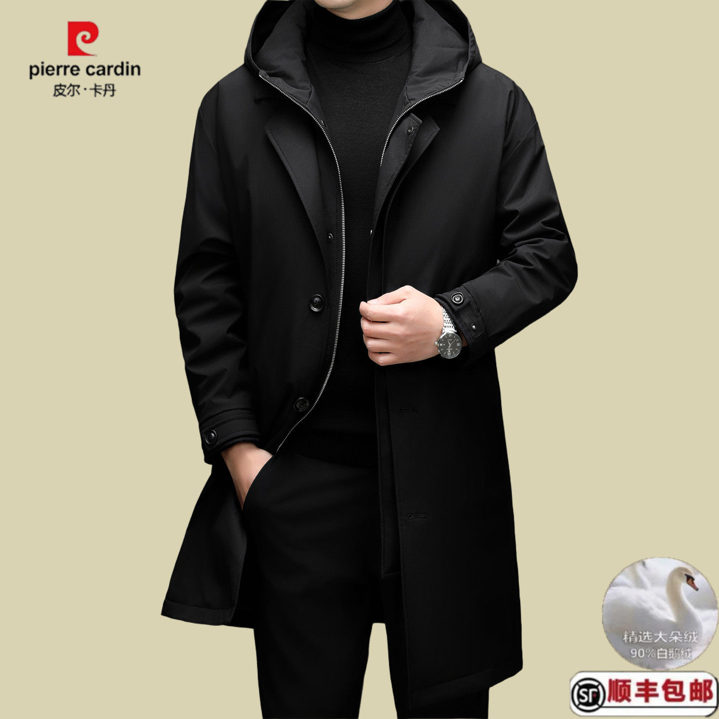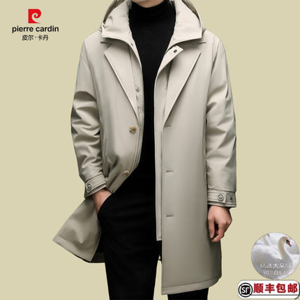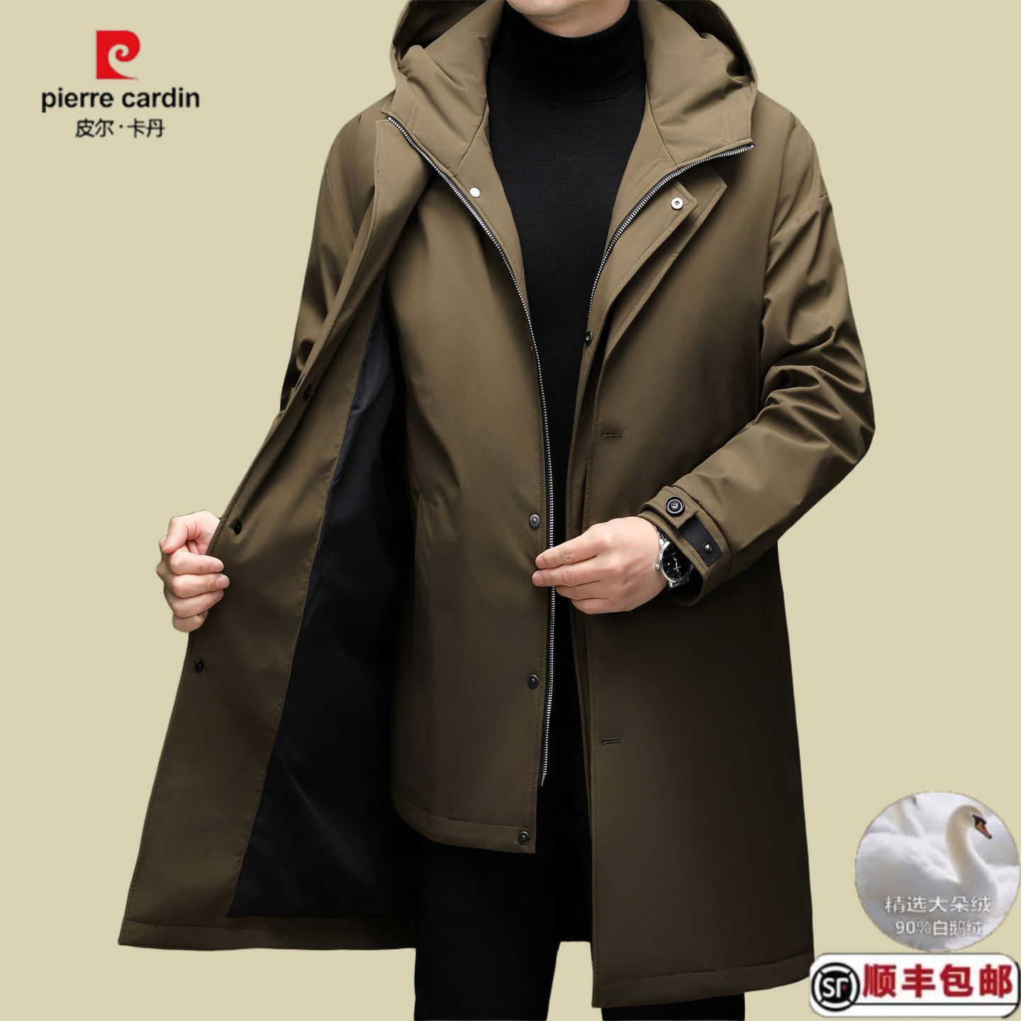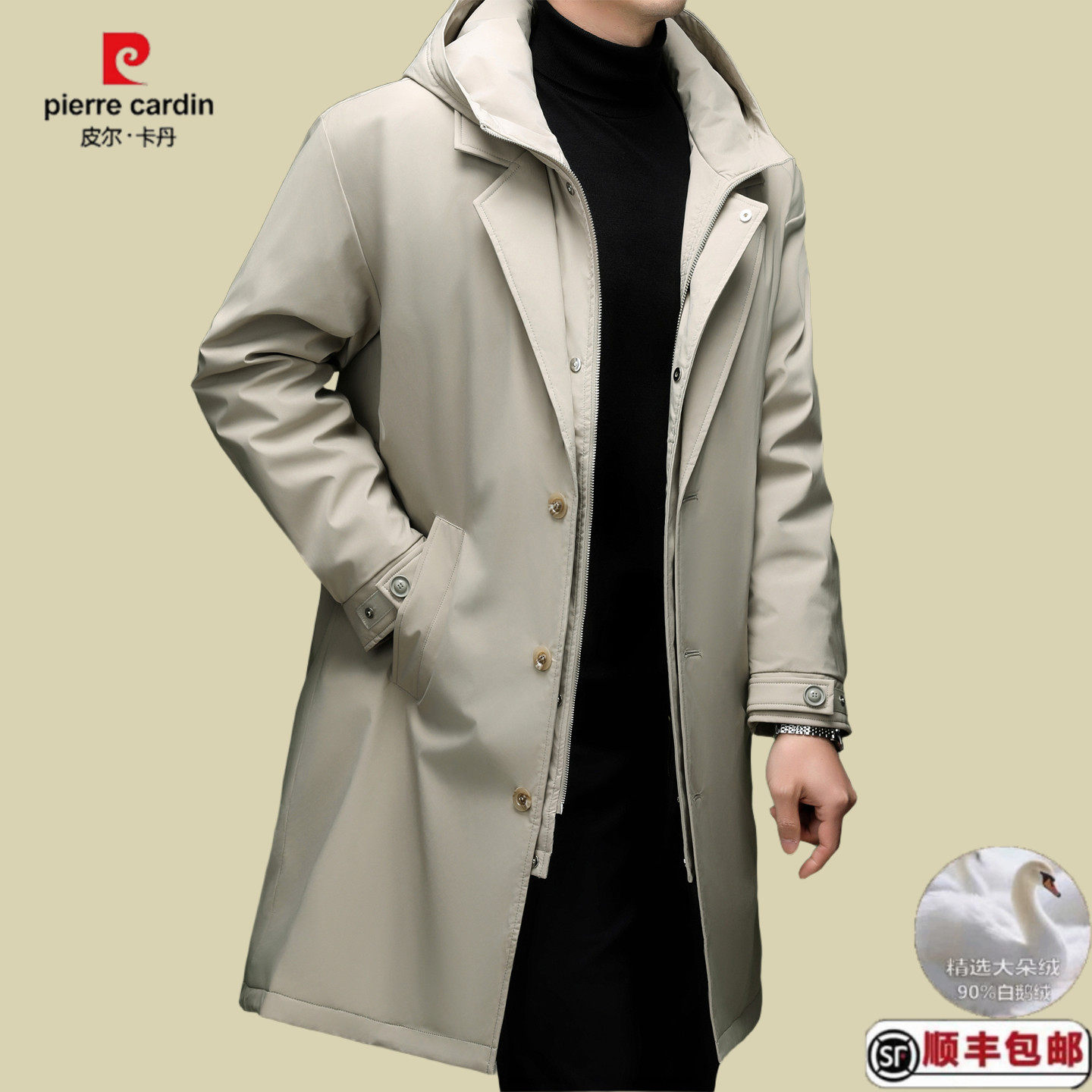 皮尔卡丹2025冬季男新款白鹅绒服中长款加厚保暖风衣外套一衣三穿