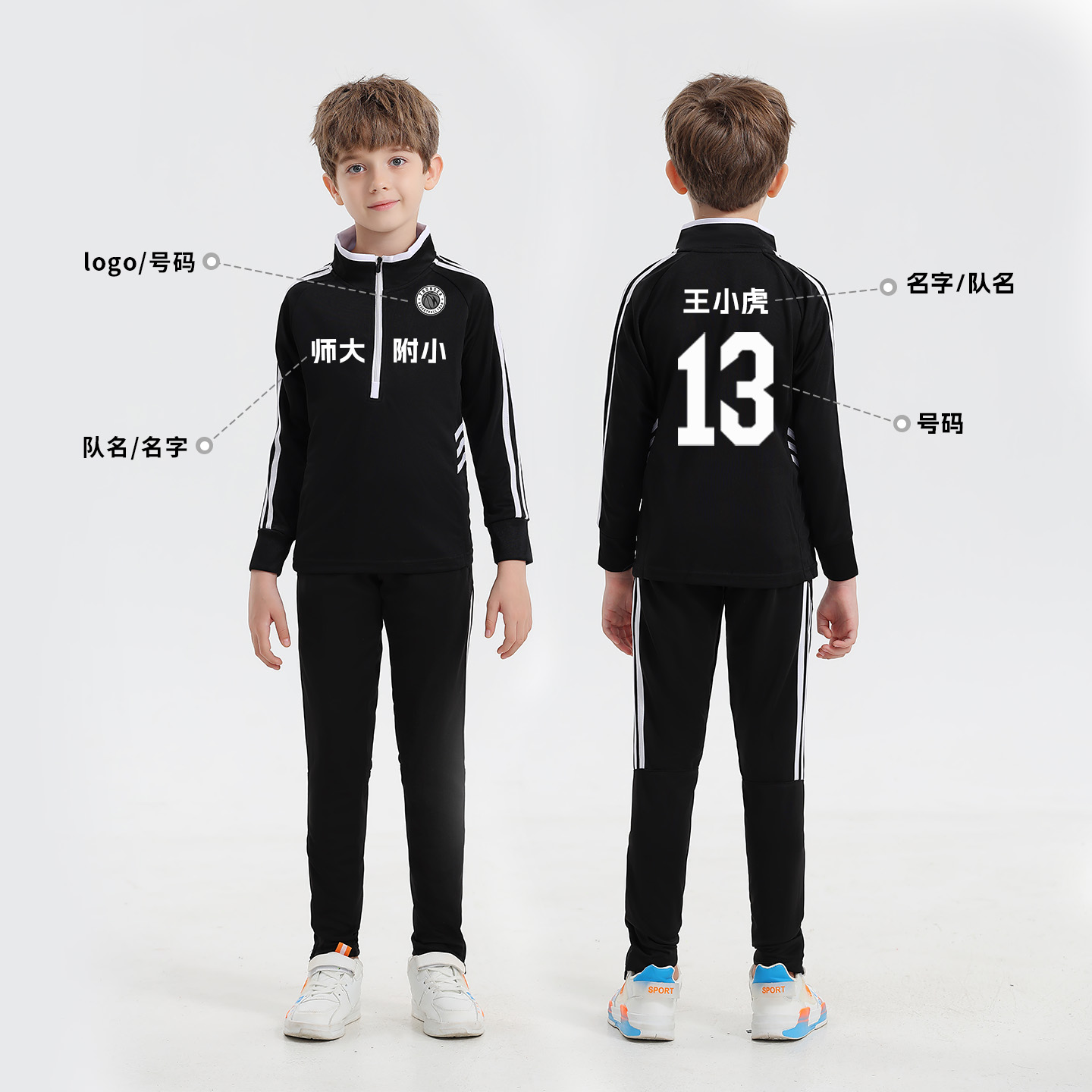 儿童足球服套装长袖外套训练比赛队服男孩女孩秋冬季足球球服定制