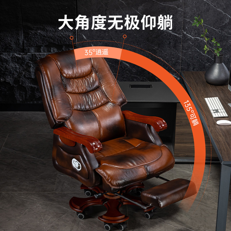 老板椅可躺办公室座椅办公椅子舒适久坐商务电脑椅真皮转椅大班椅