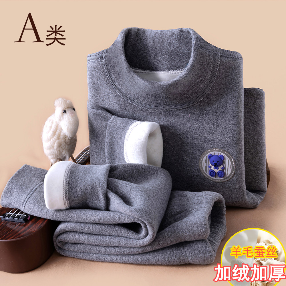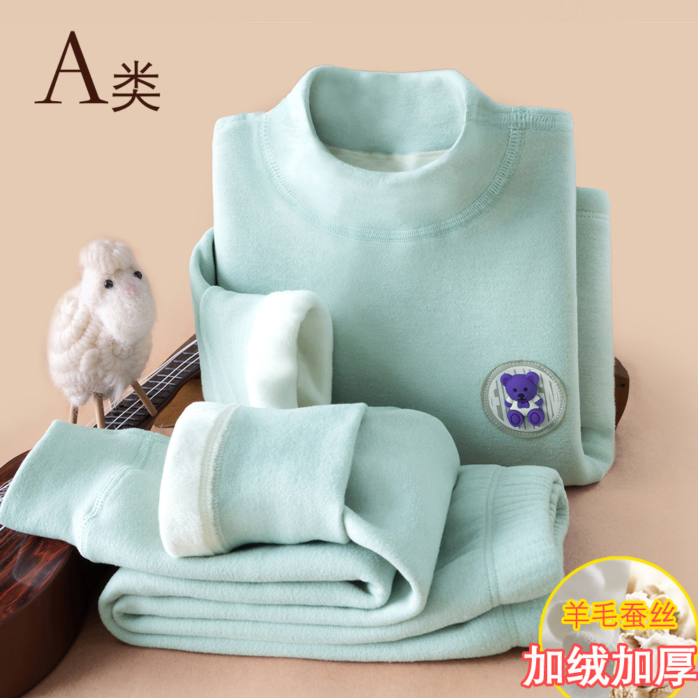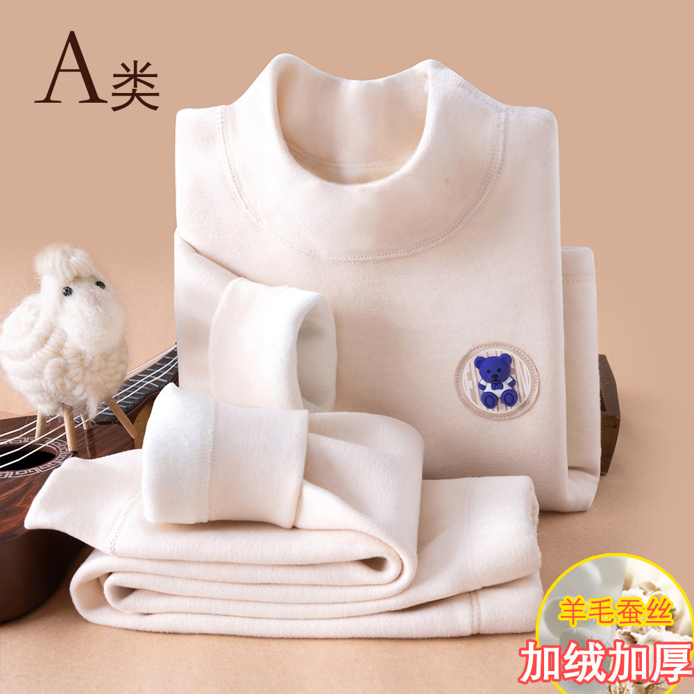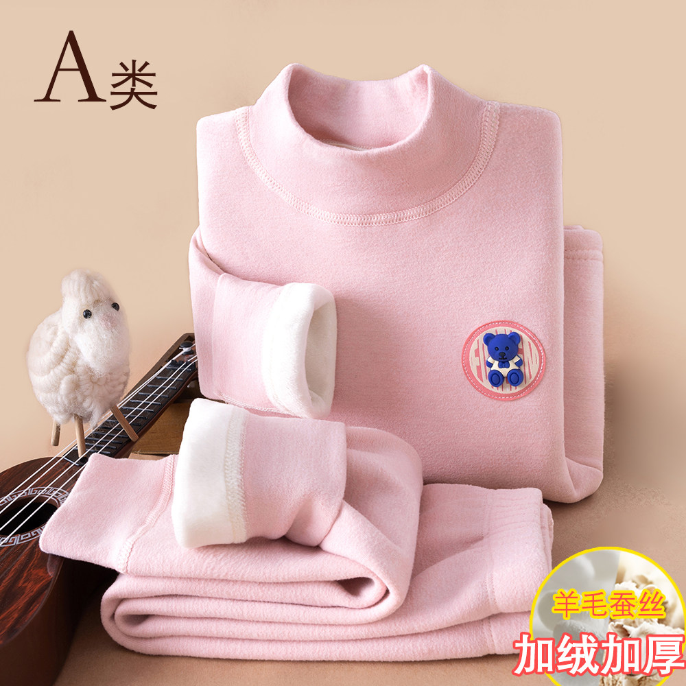 冬季加绒加厚儿童保暖内衣套装羊毛蚕丝高领男女童A类打底秋衣裤