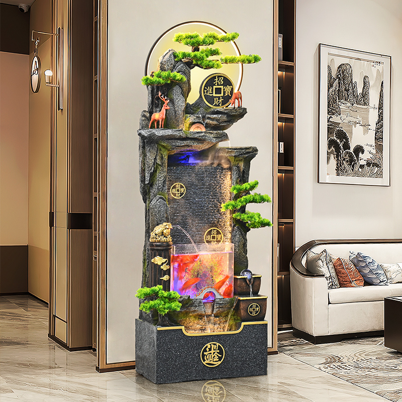 客厅玄关高山流水景观摆件水幕墙鱼缸假山循环水招财造景喷泉装饰