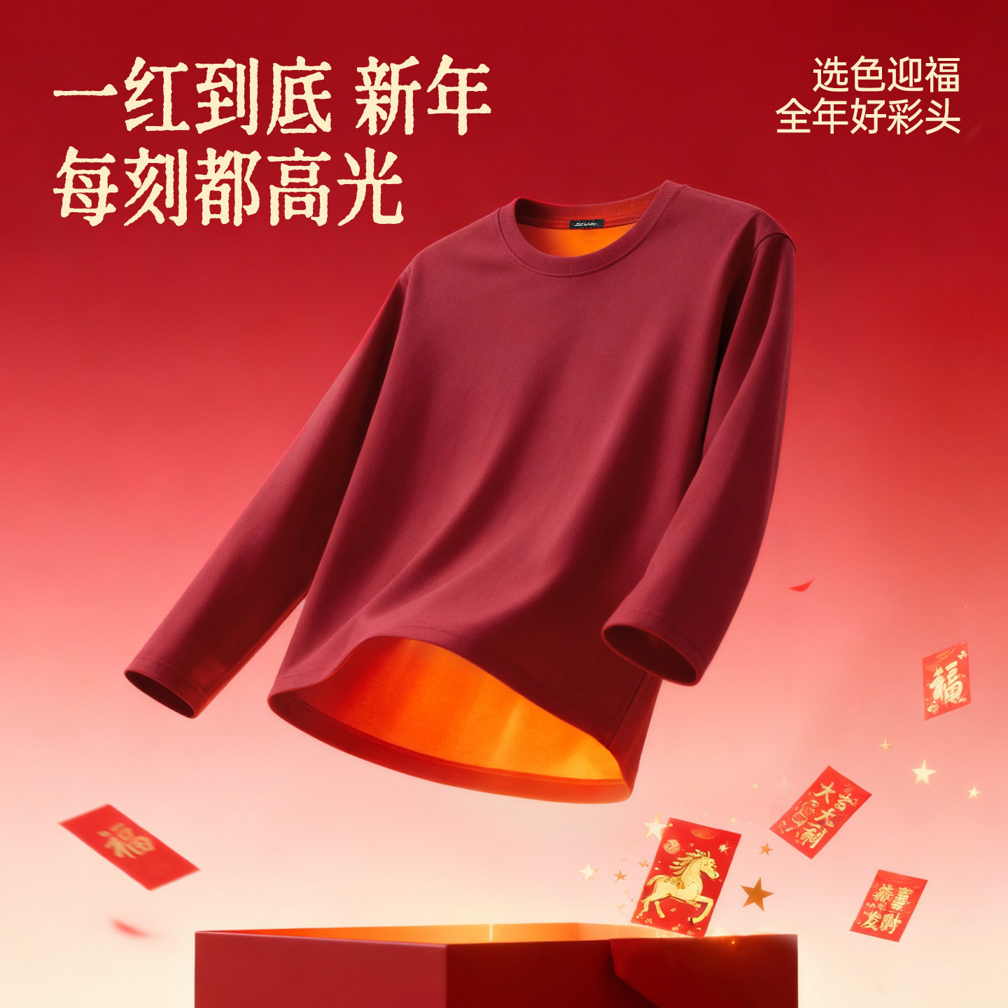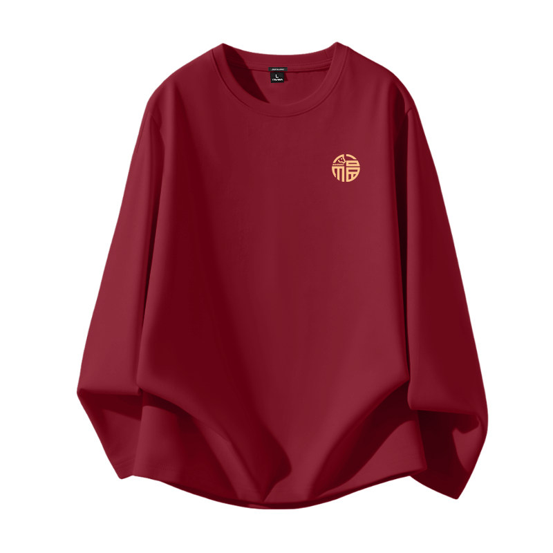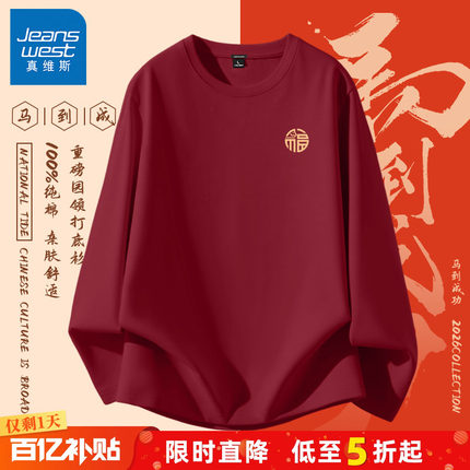GV真维斯马年本命年男士T恤春秋款纯棉酒红色衣服男内搭过年长袖A