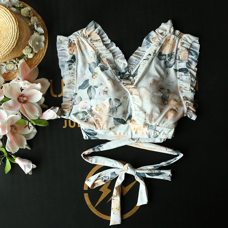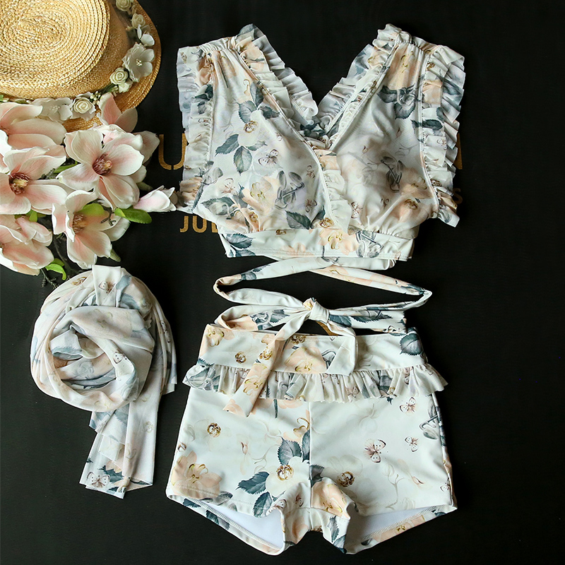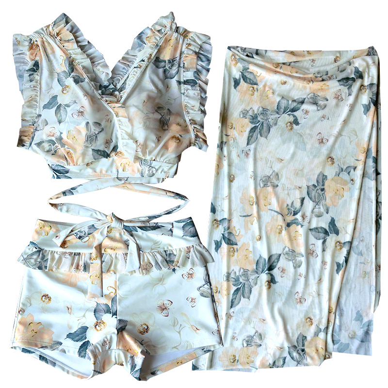 分体泳衣女三件套甜美碎花海边度假三亚沙滩裙钢托聚拢泡温泉泳装
