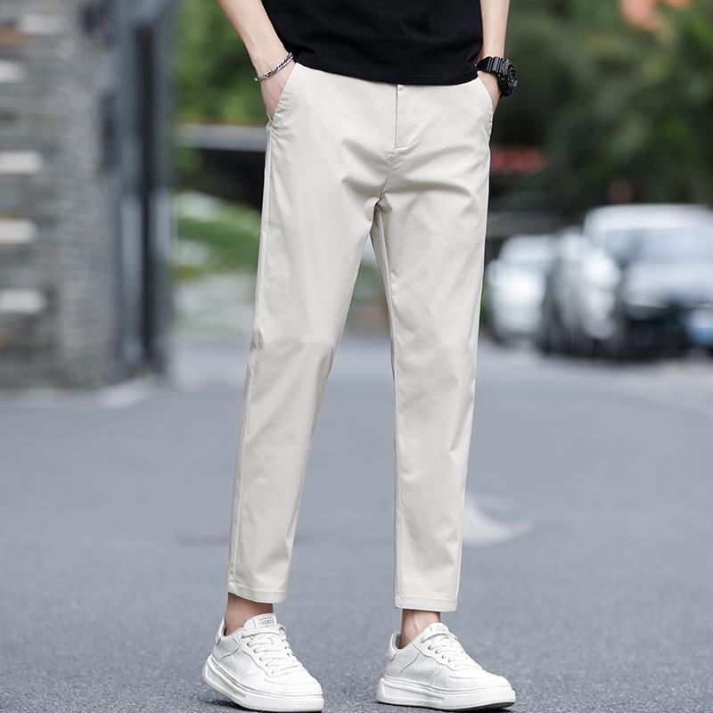意大利米白色九分男裤2025新款修身直筒西裤男士休闲裤子夏季薄款