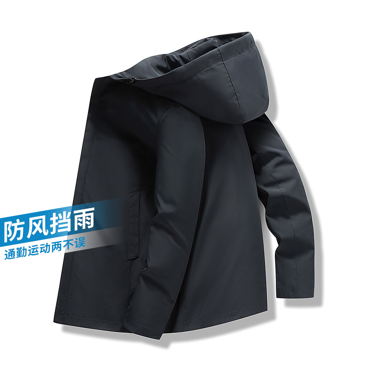 罗蒙外套春秋爸爸装商务休闲薄款防泼水连帽防风防雨风衣男士夹克