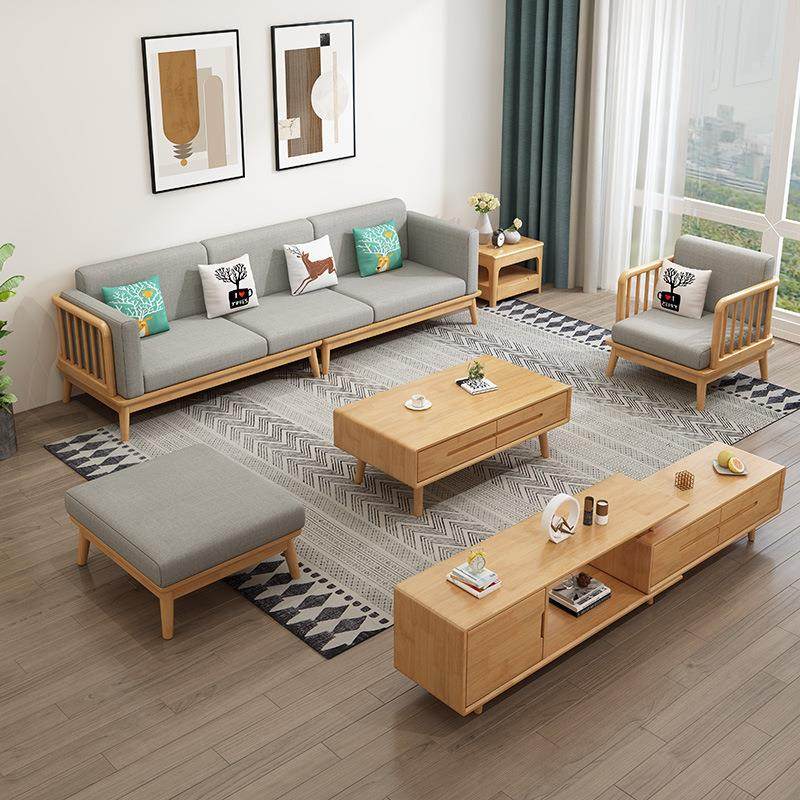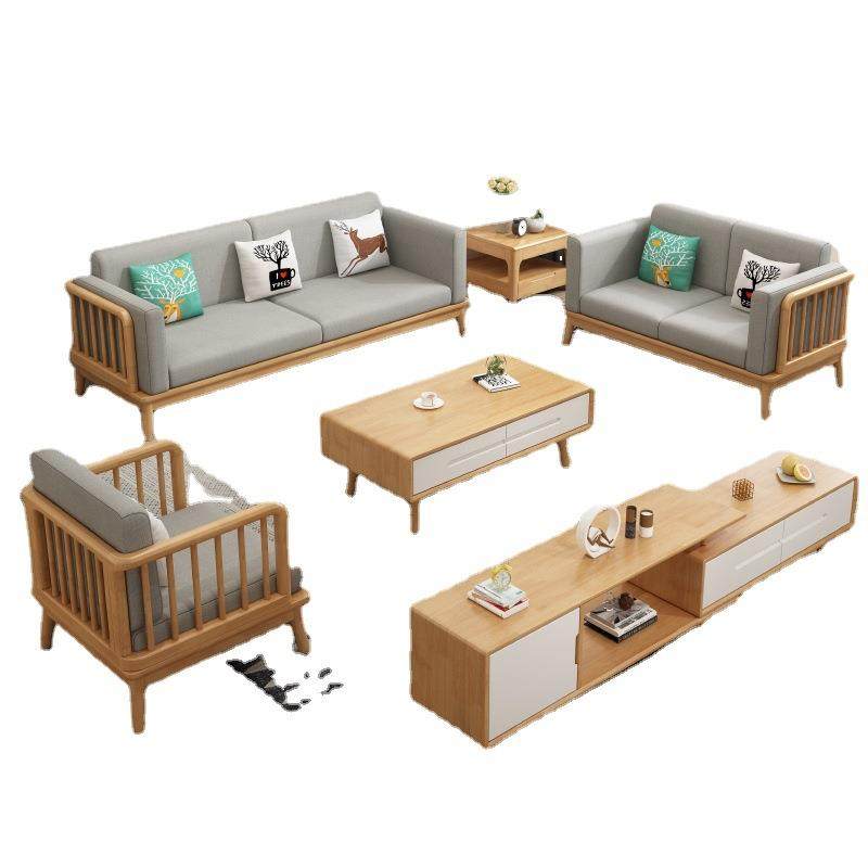 北欧风实木沙发冬夏两用家用中小户型客厅布艺沙发转角三人位组合