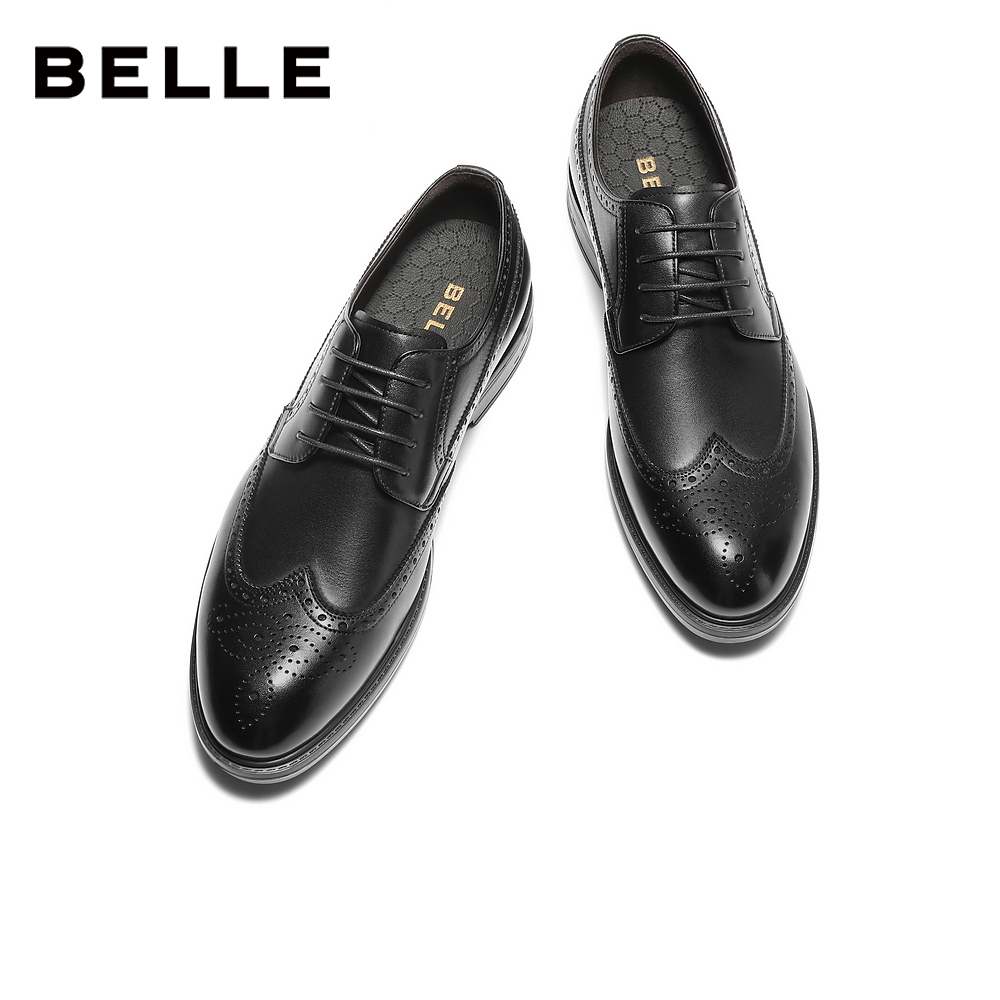 百丽男鞋内增高布洛克商务真牛皮鞋男士秋商场款正装婚鞋8TP01CM5