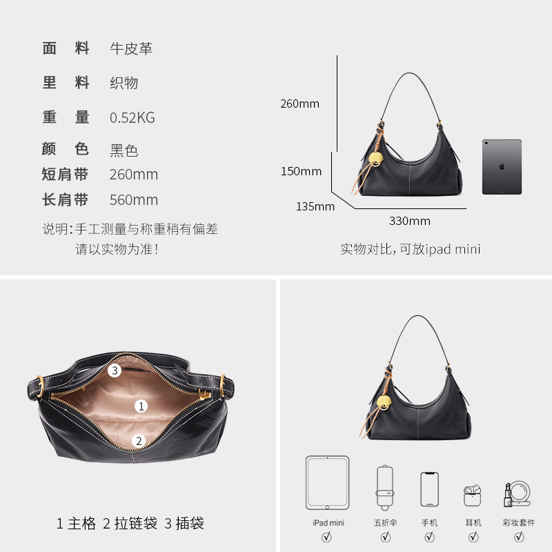 【博主同款】万里马植语hobo包植鞣牛皮腋下单肩斜挎通勤托特女包