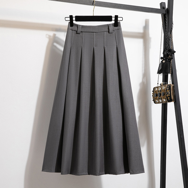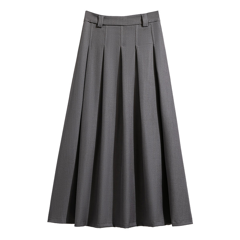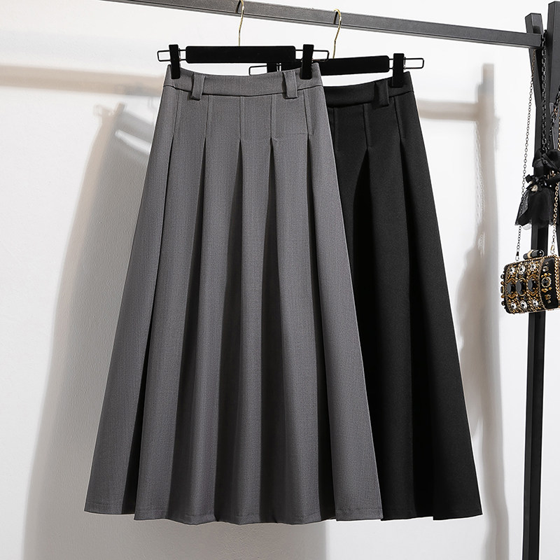 2024早春灰色西装百褶裙女a字半身裙大码胖mm高腰显瘦中长款裙子